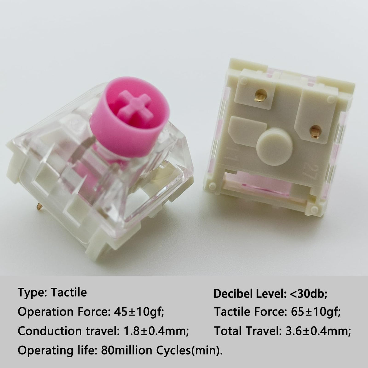 [High Quality]:Kailh Mute Pink Switch With Box Structure,Mute Switch,Has High Stability;Super Long Life With 80 Million Cycles;Double Dustproof&Waterproof. | [Feature]:Mute Switch,Silent When Clicked