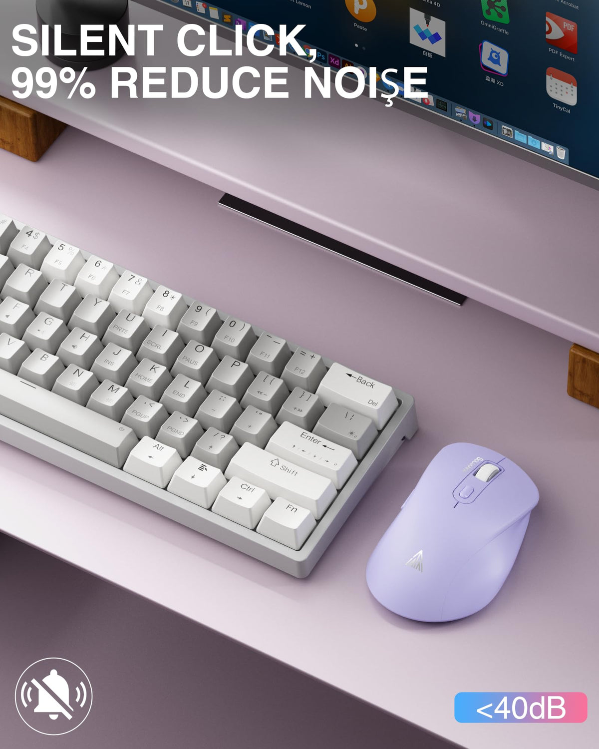 Sm66 Purple Silent Dual Mode Wireless Mouse For Laptop, Adjustable 4800 Dpi,Rechargeable Computer Mouse For Bluetooth And Wireless Connection
