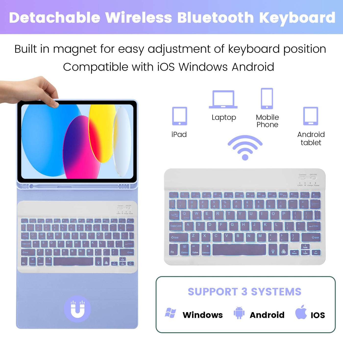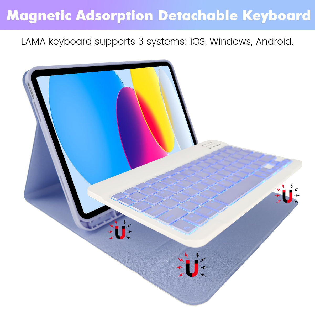 Soppy Ipad 10Th Generation Case With 7 Color Backlit Keyboard For Ipad 10Th Gen 10.9'' 2022 (A2696/A2757/A2777), Detachable Wire