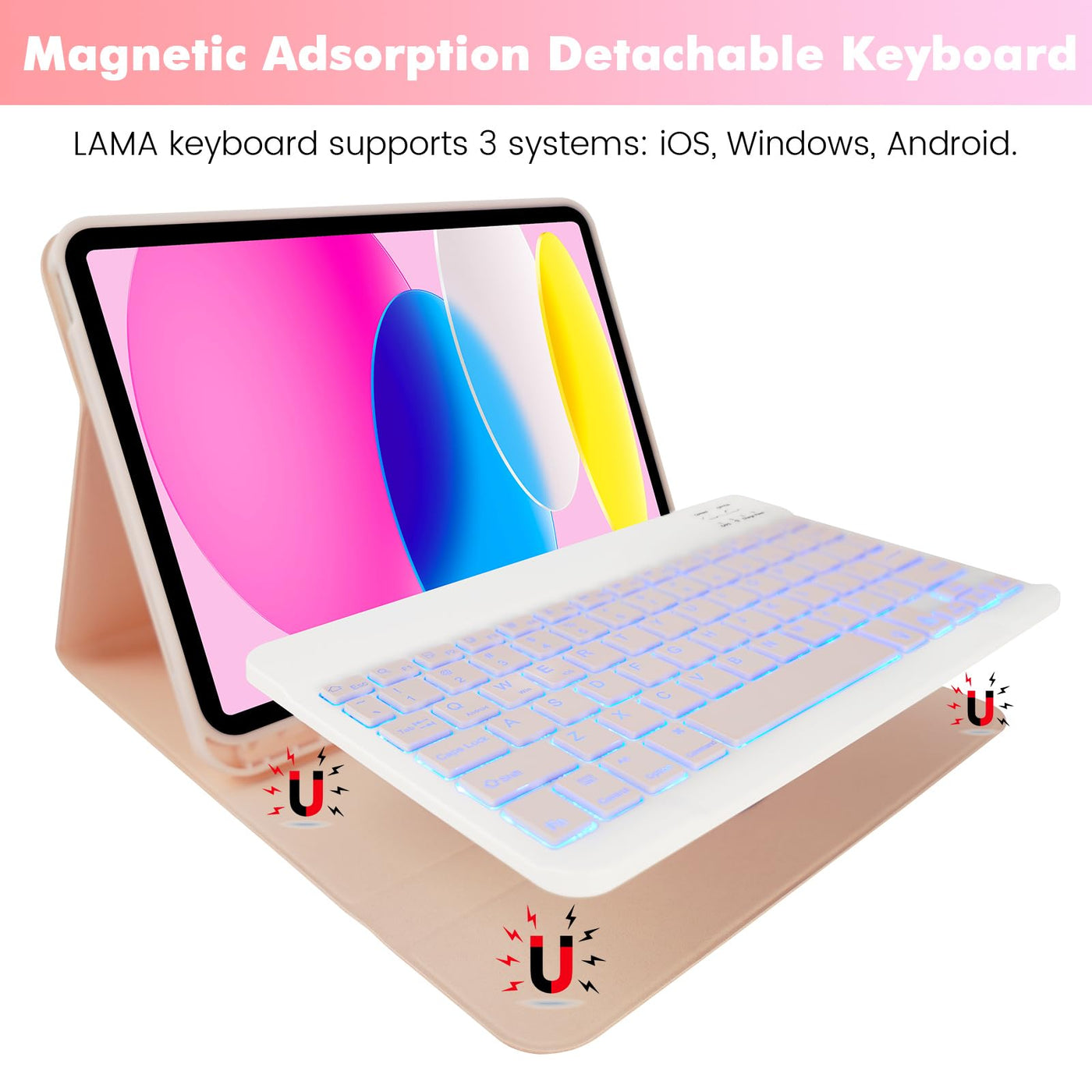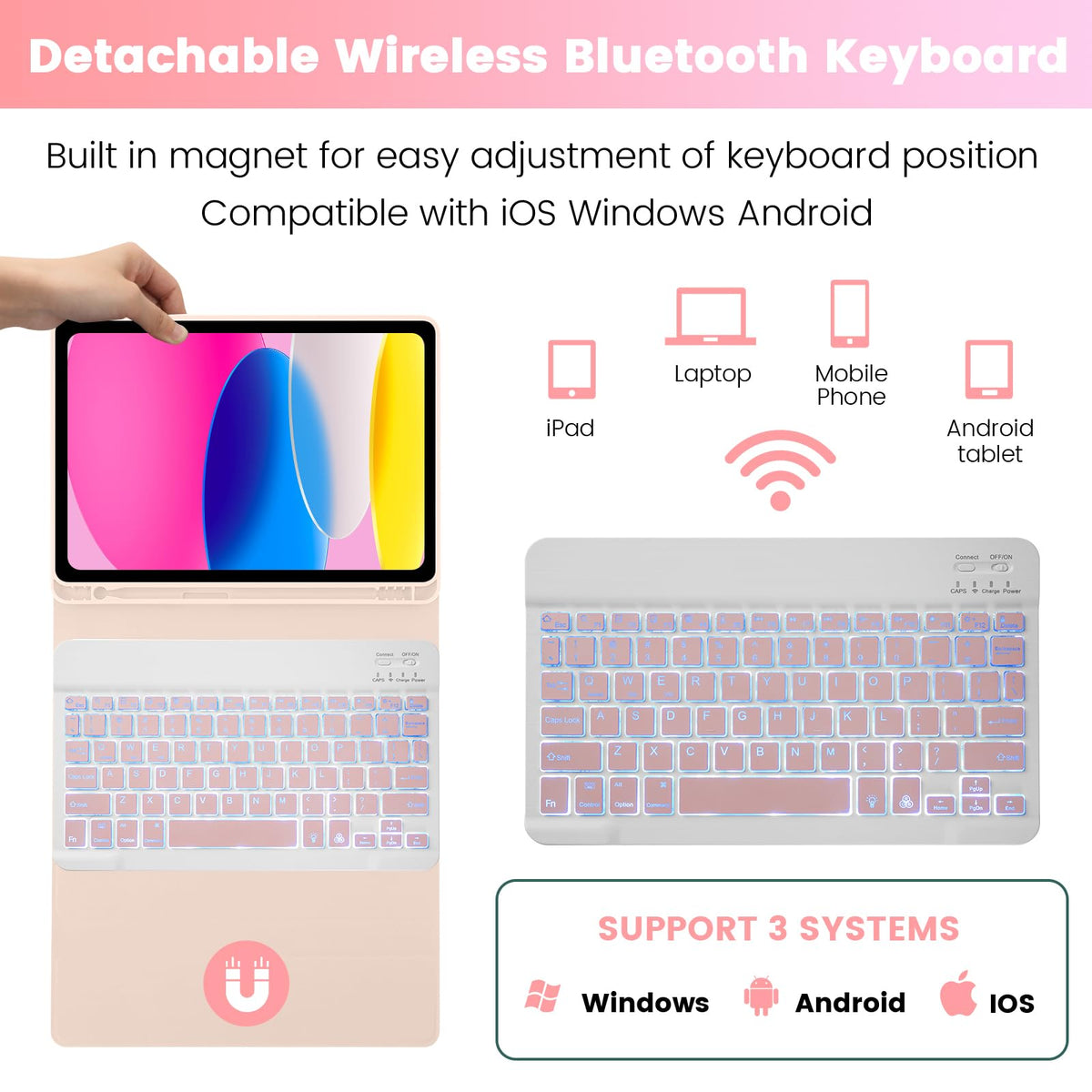 Soppy Keyboard Case With 7 Color Backlit For Ipad 10Th Gen 10.9'' 2022 (A2696/A2757/A2777), Detachable Wireless Keyboard With Pe