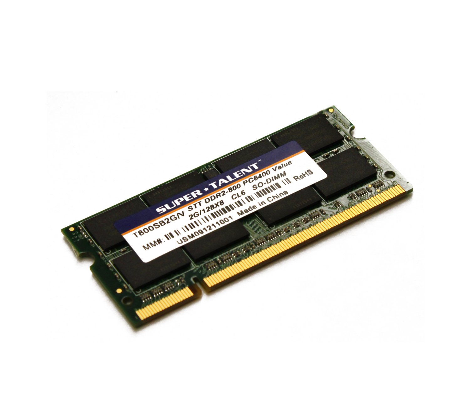 Product Descriptionsuper Talent Laptop Memory Is Designed For Compatibility With A Wide Range Of Portable Computers. Our Fully Jedec Compliant So-Dimms Are Built With Only The Highest Quality Components. All New Products, New Component Suppliers, And Chnology Changes Are Rigorously Tested In A Multitude Of Laptop Computers In Our Compatibility Labs Prior To Production. Super Talent Laptop Memory Is 100% Tested. Every So-Dimm Module We Build Is Tested At Its Rated Specs To Guarantee Functionality. Our So-Dimms Are Backed With Super Talent'S Lifetime Warranty, And Are Perfect For Upgrades. Mfr Part Number: T800Sb2G/V, Type: Ddr2 Sodimm, Capacity: 2 Gb, Speed: Pc6400 800Mhz, Size & Bit: 128M X 8, Pins: 200Pin, Ecc: No, Registered: Nofrom The Manufacturersuper Talent Laptop Memory Is Designed For Compatibility With A Wide Range Of Portable Computers. Our Fully Jedec Compliant So-Dimms Are Built With Only The Highest Quality Components. All New Products, New Component Suppliers, And Chnology Changes Are Rigorously Tested In A Multitude Of Laptop Computers In Our Compatibility Labs Prior To Production.Super Talent Laptop Memory Is 100% Tested. Every So-Dimm Module We Build Is Tested At Its Rated Specs To Guarantee Functionality. Our So-Dimms Are Backed With Super Talent??S Lifetime Warranty, And Are Perfect For Upgrades.
