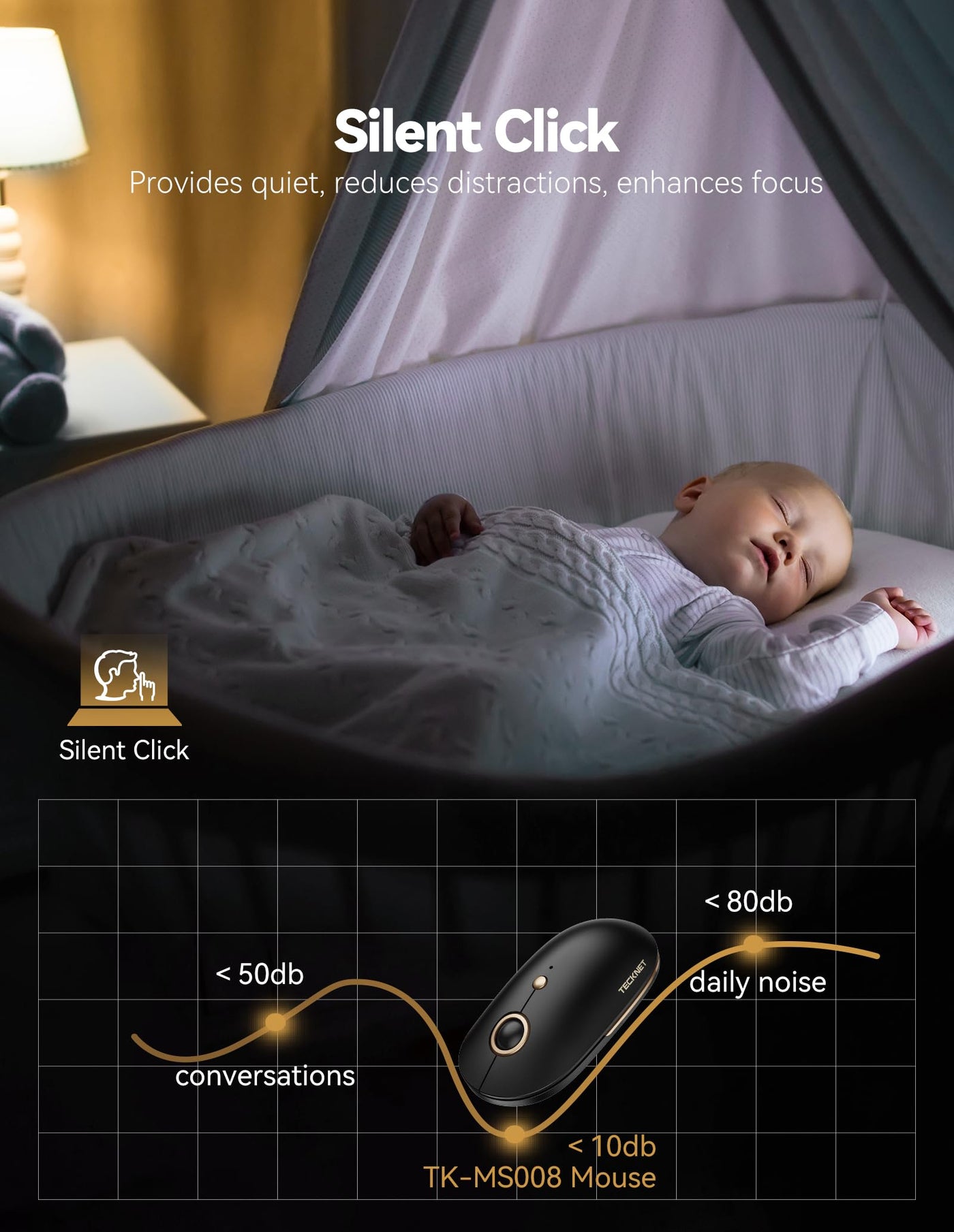 Tecknet Computer Mouse, Silent Mouse Wireless, 2.4Ghz Usb A Wireless Mouse, 4800 Dpi Ambidextrous Quiet Click Mouse For Travel,