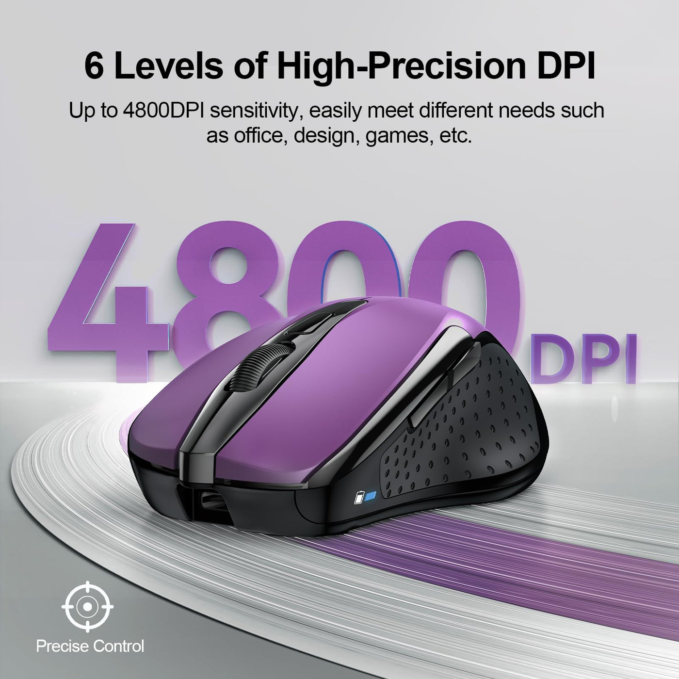 Tecknet Wireless Mouse (Bt5.0/3.0 & 2.4G) Rechargeable 4800 Dpi Silent Mouse 8 Buttons Bluetooth Mouse, Usb A Mouse Wide Compati