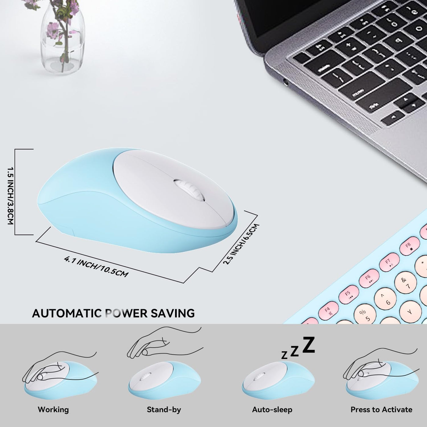 Tkvpjyyi Wireless Keyboard And Mouse Combo, 2.4Ghz Usb Cordless Round Keys Set For Laptop, Computer, Tv (Pink+Blue)