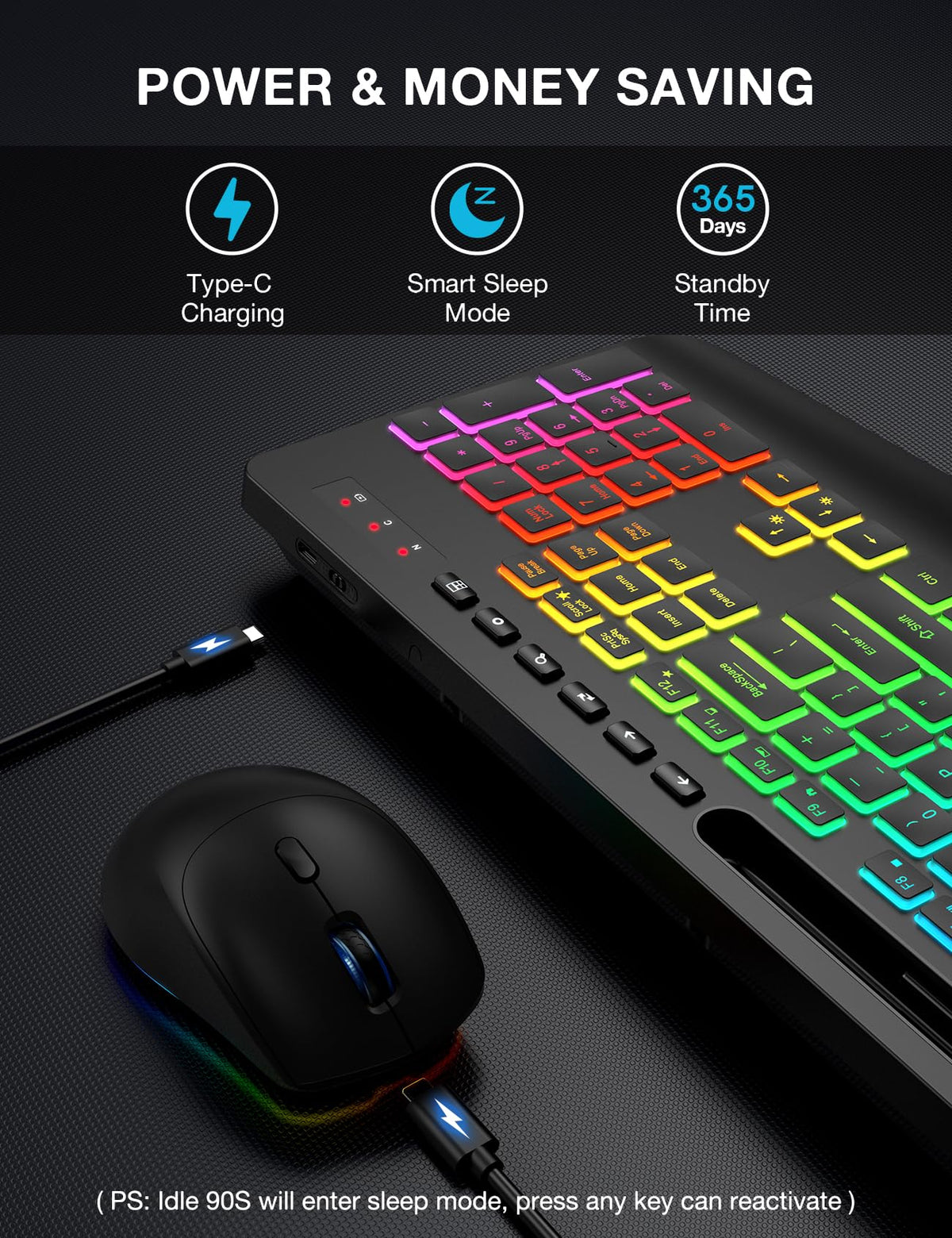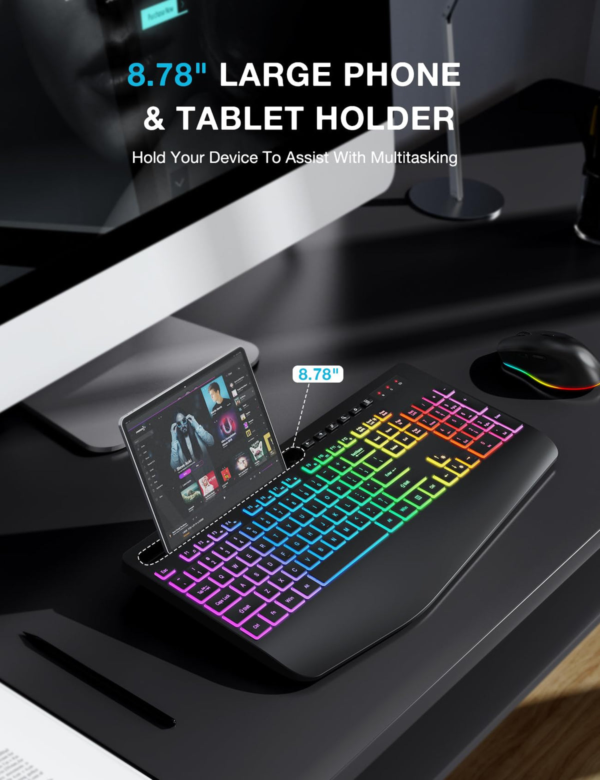Wireless Keyboard And Mouse Combo, 9 Backlit Effects, Wrist Rest, Phone Holder, 2.4G Lag Free Ergonomic Keyboards, Rechargeable