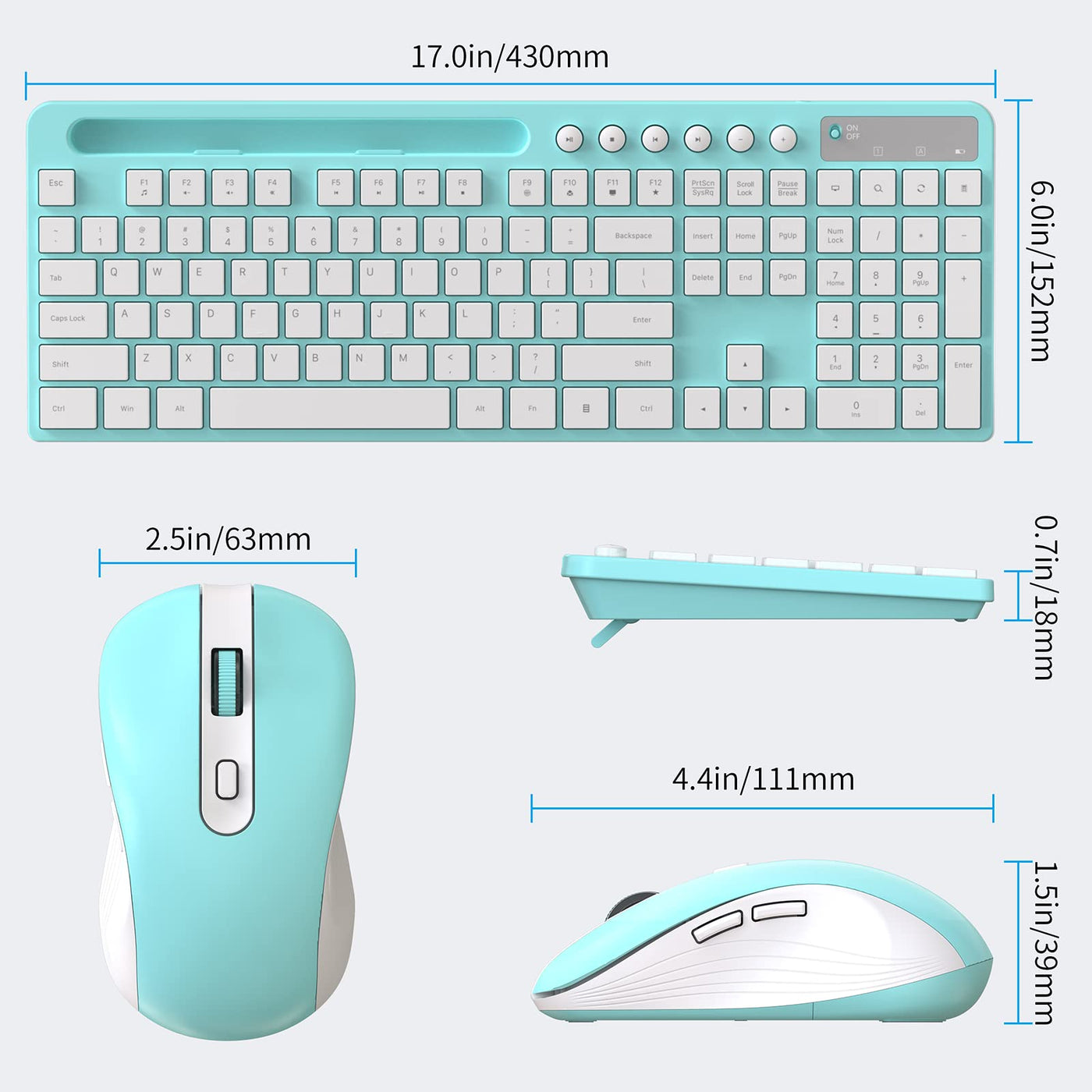 Wireless Keyboard And Mouse Combo, Marvo 2.4G Ergonomic Wireless Computer Keyboard With Phone Tablet Holder, Silent Mouse With 6 Button, Compatible With Macbook, Windows (Blue)