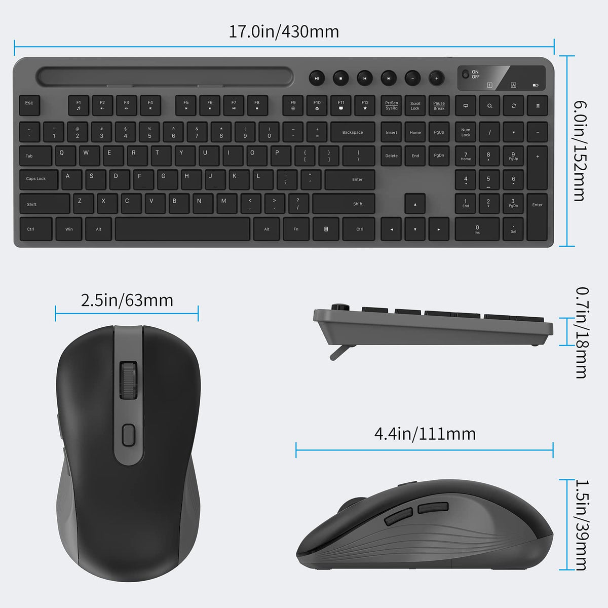 Wireless Keyboard And Mouse Combo, Marvo 2.4G Ergonomic Wireless Computer Keyboard With Phone Tablet Holder, Silent Mouse With 6 Button, Compatible With Macbook, Windows (Grey)
