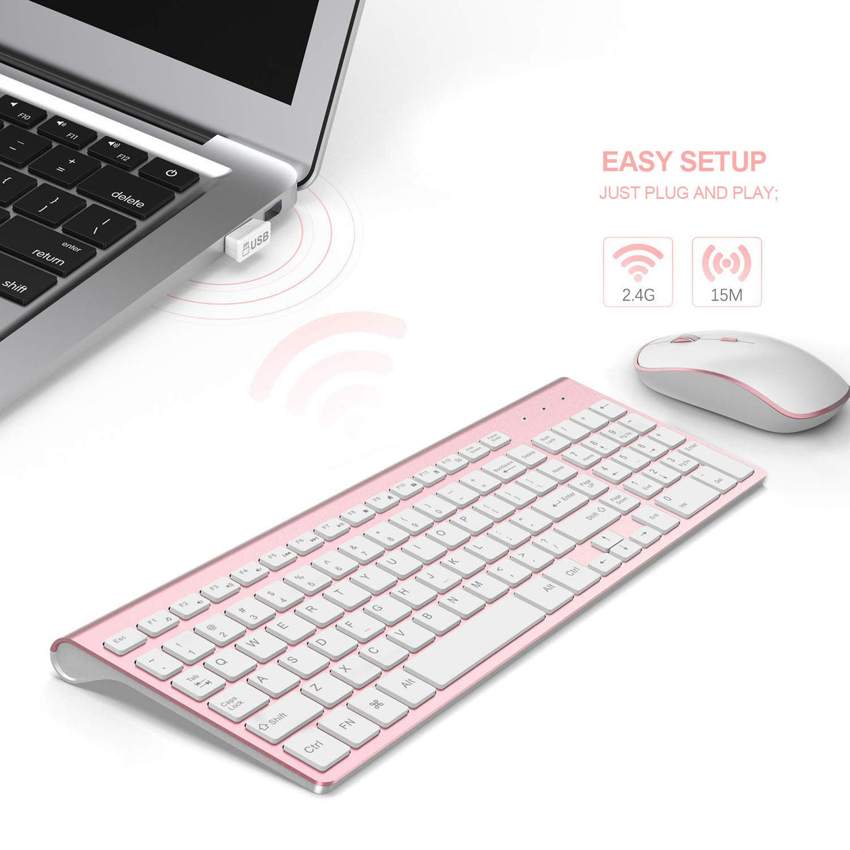Wireless Keyboard Mouse, J Joyacces2.4G Compact And Ultra Slim Wireless Keyboard And Mouse For Windows, Computer, Desktop, Pc, L