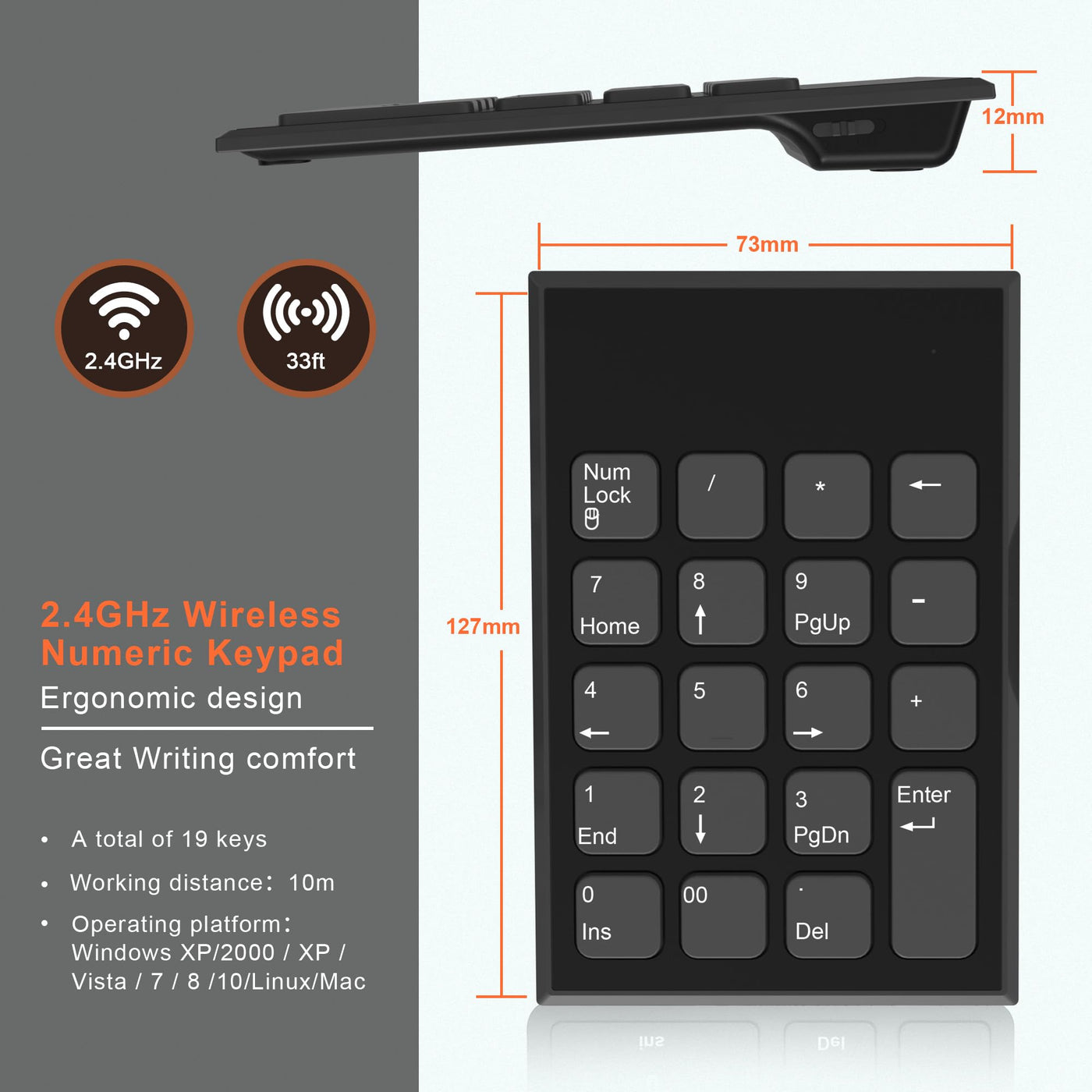 Wireless Number Pad And Mouse, 19 Keys Portable Ultra Slim 2.4Ghz 10 Key Usb Keypad And 3 Adjustable Dpi Silent Mouse Set For La