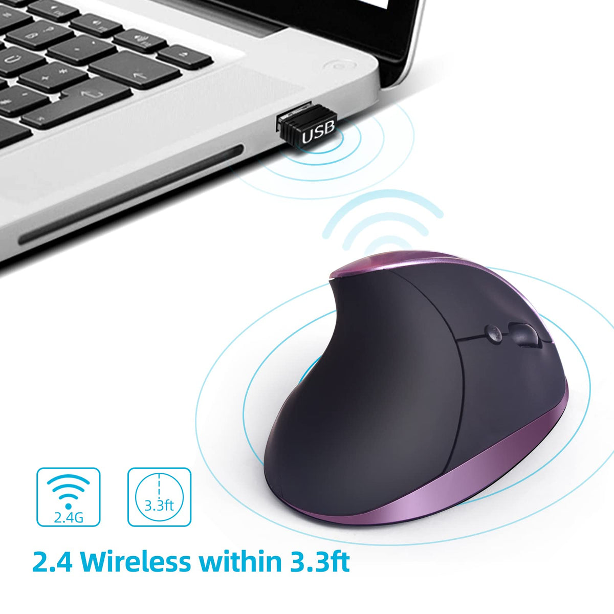 Woddlffy Ergonomic Mouse Wireless,Rechargeable Vertical Mouse Right Handed Small Mouse With 6 Buttons 1000/1200/1600 For Laptop,
