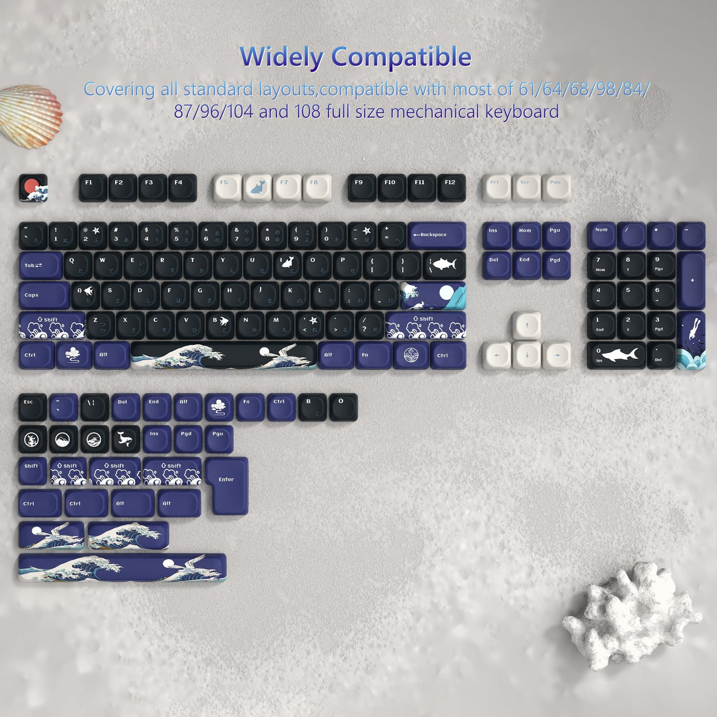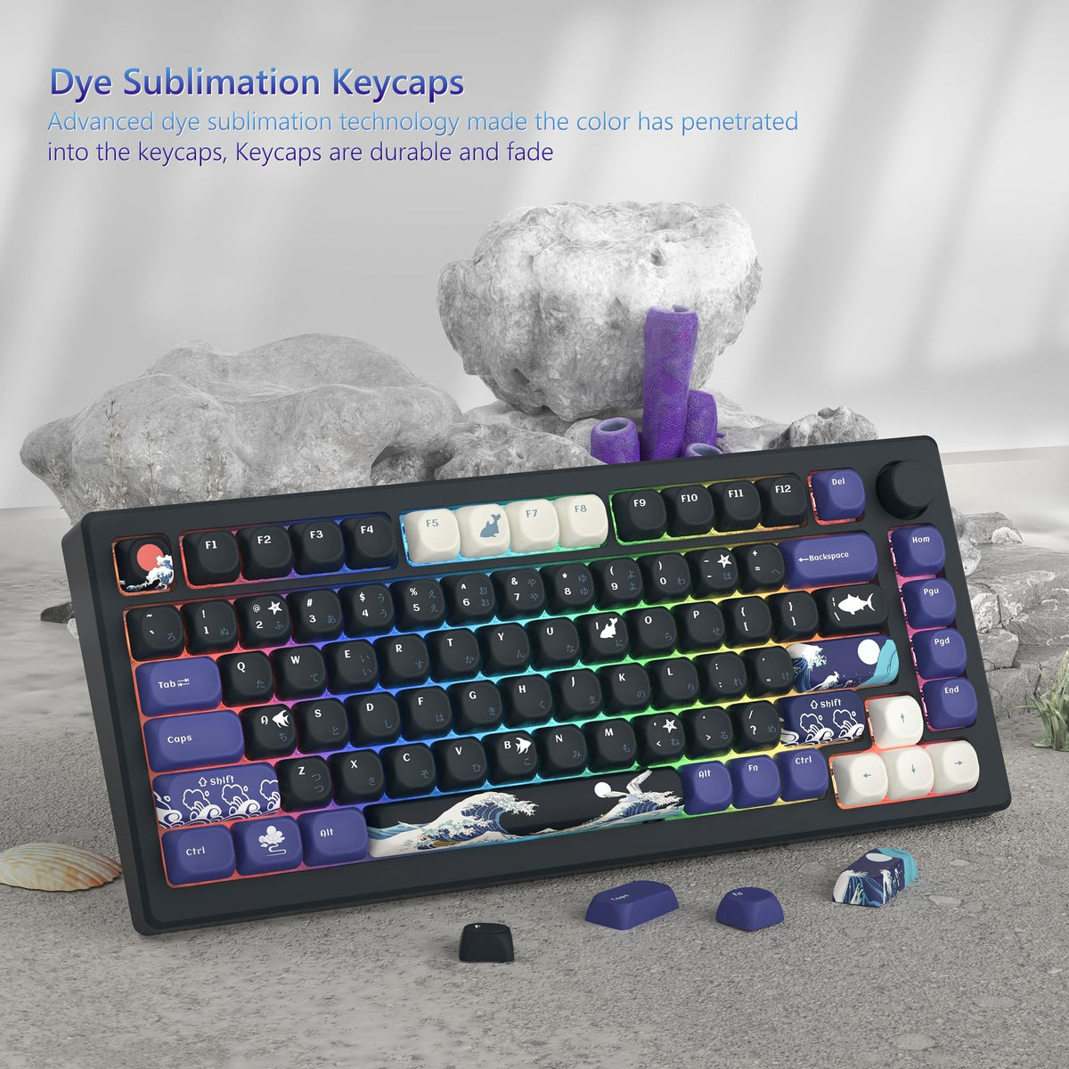 Womier Moa Keycaps, Pbt Keycaps, Japanese Keycaps 75 Percent, Custom Keyboard Keycaps Set Gradation Dye-Sublimation For 61/64/68/84/87/100/104/108 Cherry Mx Mechanical Keyboard