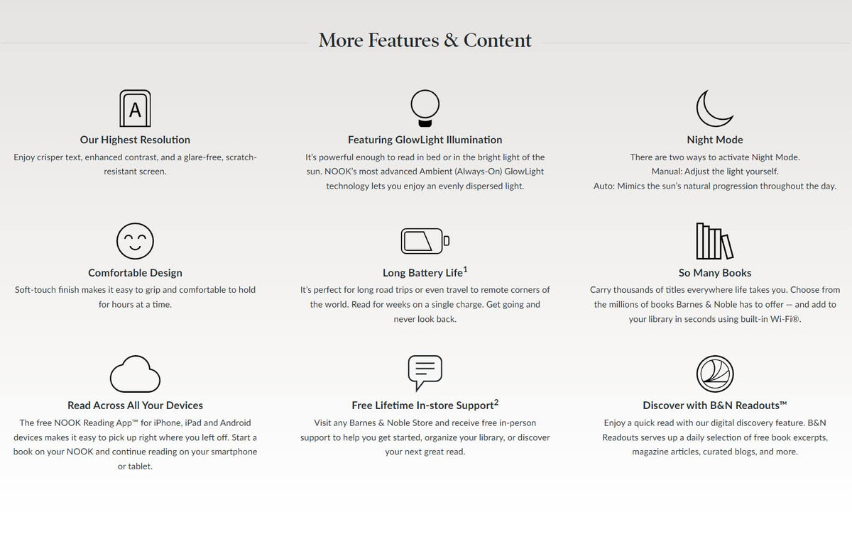 A 6'' High-Resolution 300-Dpi Screen With Built-In Glare- Scratch- And Fingerprint-Resistant Lens Provides A Paper-Like Reading Experience. Its Powerful Enough To Read In Bed Or In The Bright Light Of The Sun. Nooks Most Advanced Ambient (Always-On) Glowlight Technology Lets You Enjoy An Evenly Dispersed Light.