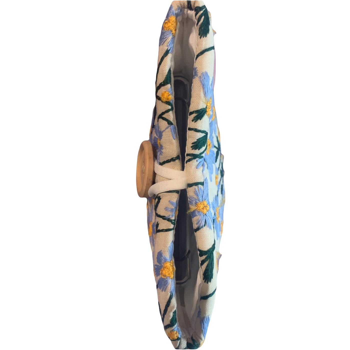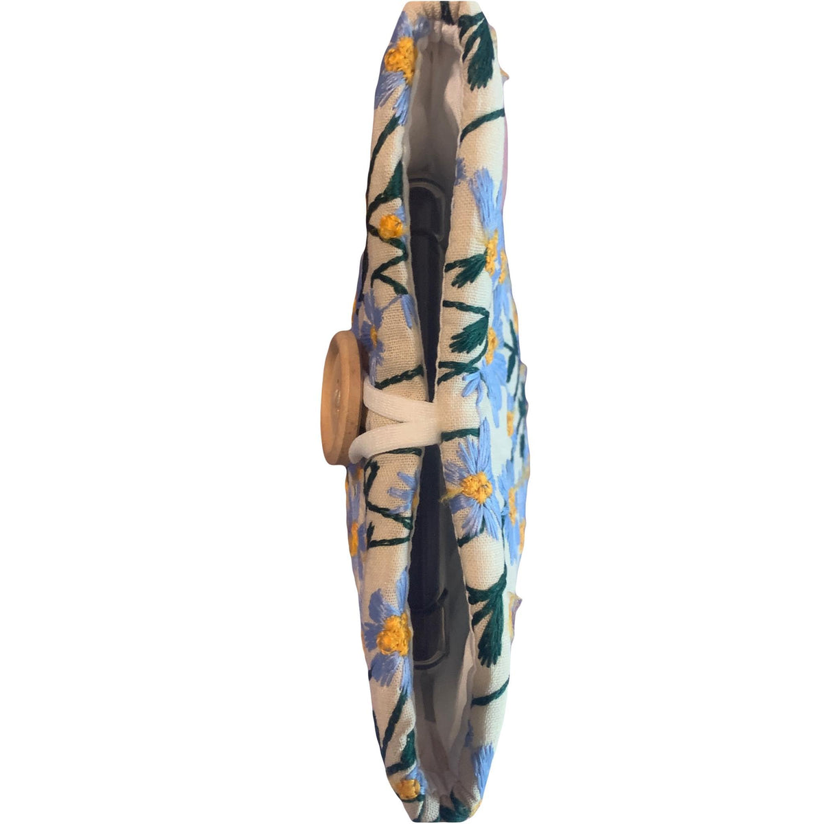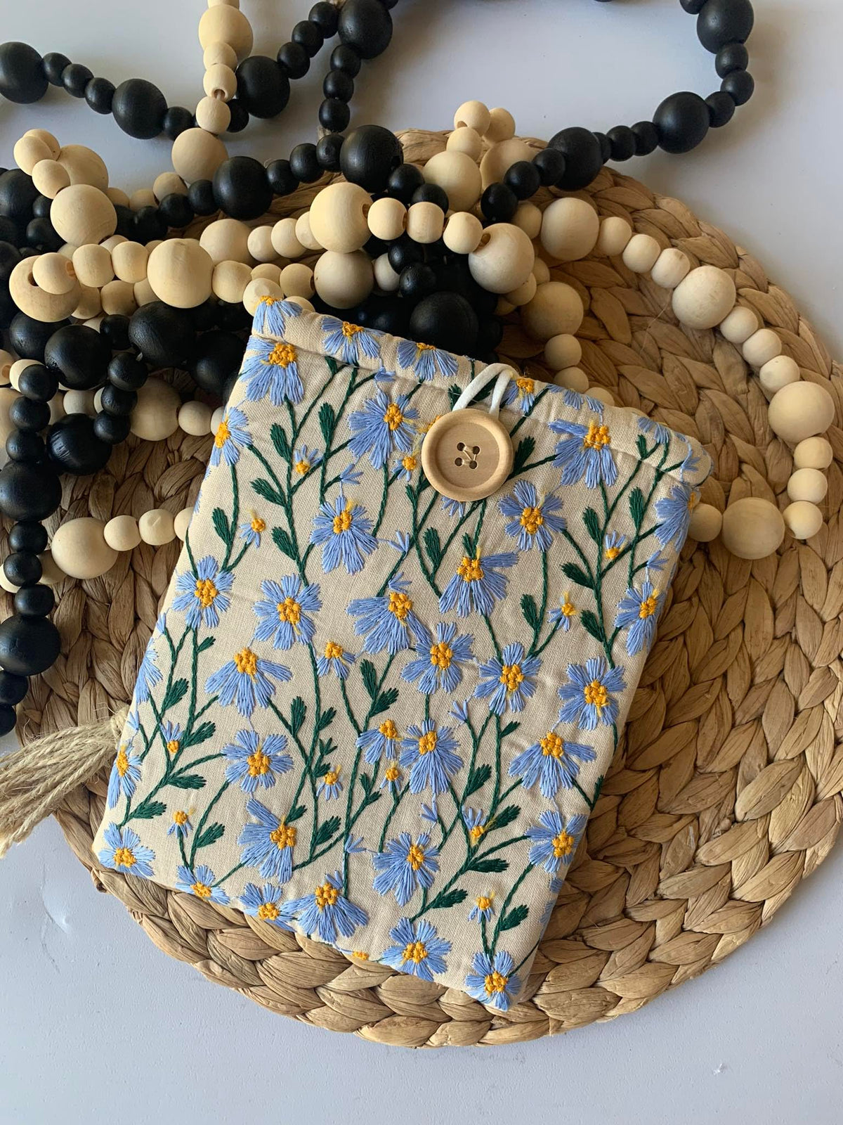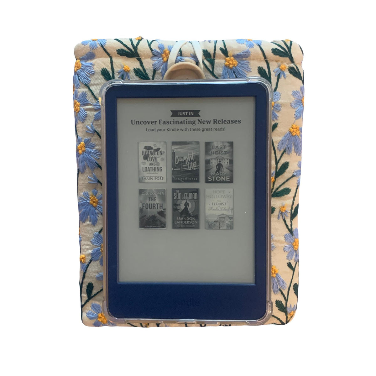 BirdieQPlusTwo Embroidered Daisy Kindle Paperwhite Sleeve 6x8 - Padded E-Reader Pouch for Extra Protection, Blue Beige