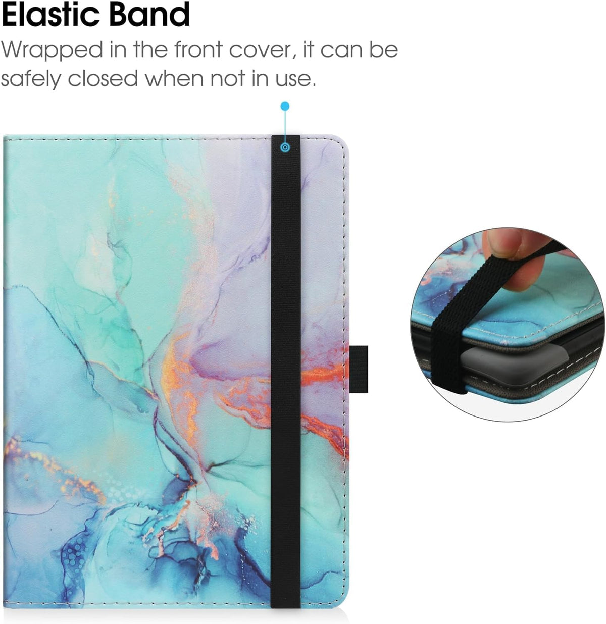 Q: Is the case available in different colors or materials?A: The HGWALP Universal Case is currently available in Marble Blue and is made from faux leather, providing a stylish and durable option for your eReader.