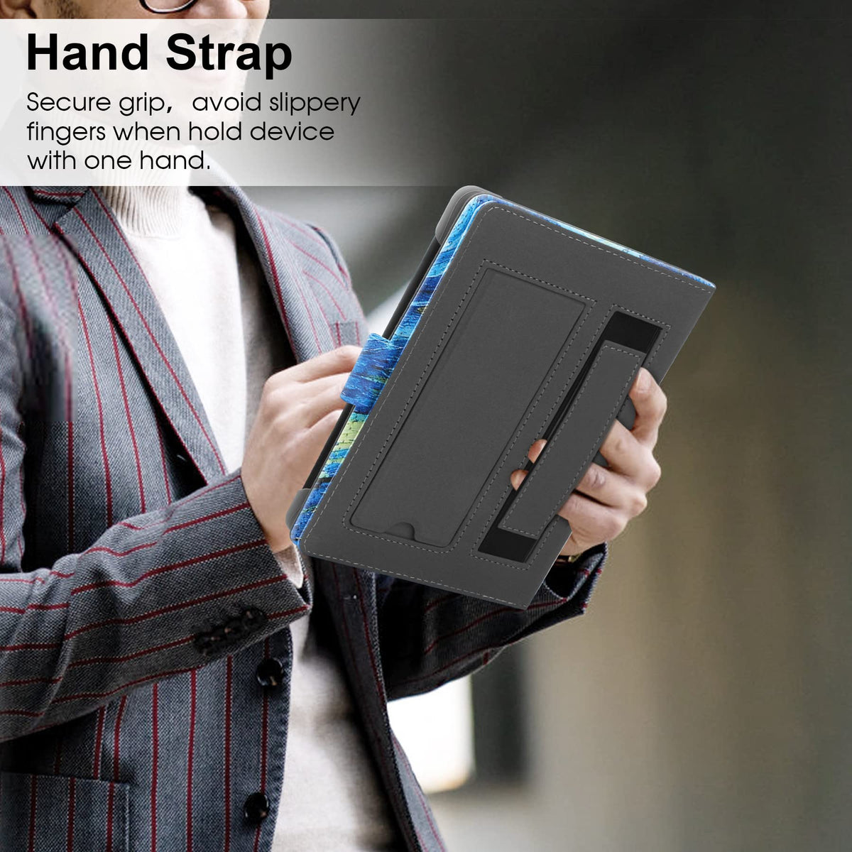 Q: Does this case have a stand feature?A: Yes, the HoYiXi Universal Case features a foldable stand that supports multiple viewing angles, enhancing your reading experience. It also includes an elastic hand strap for comfortable one-handed reading.