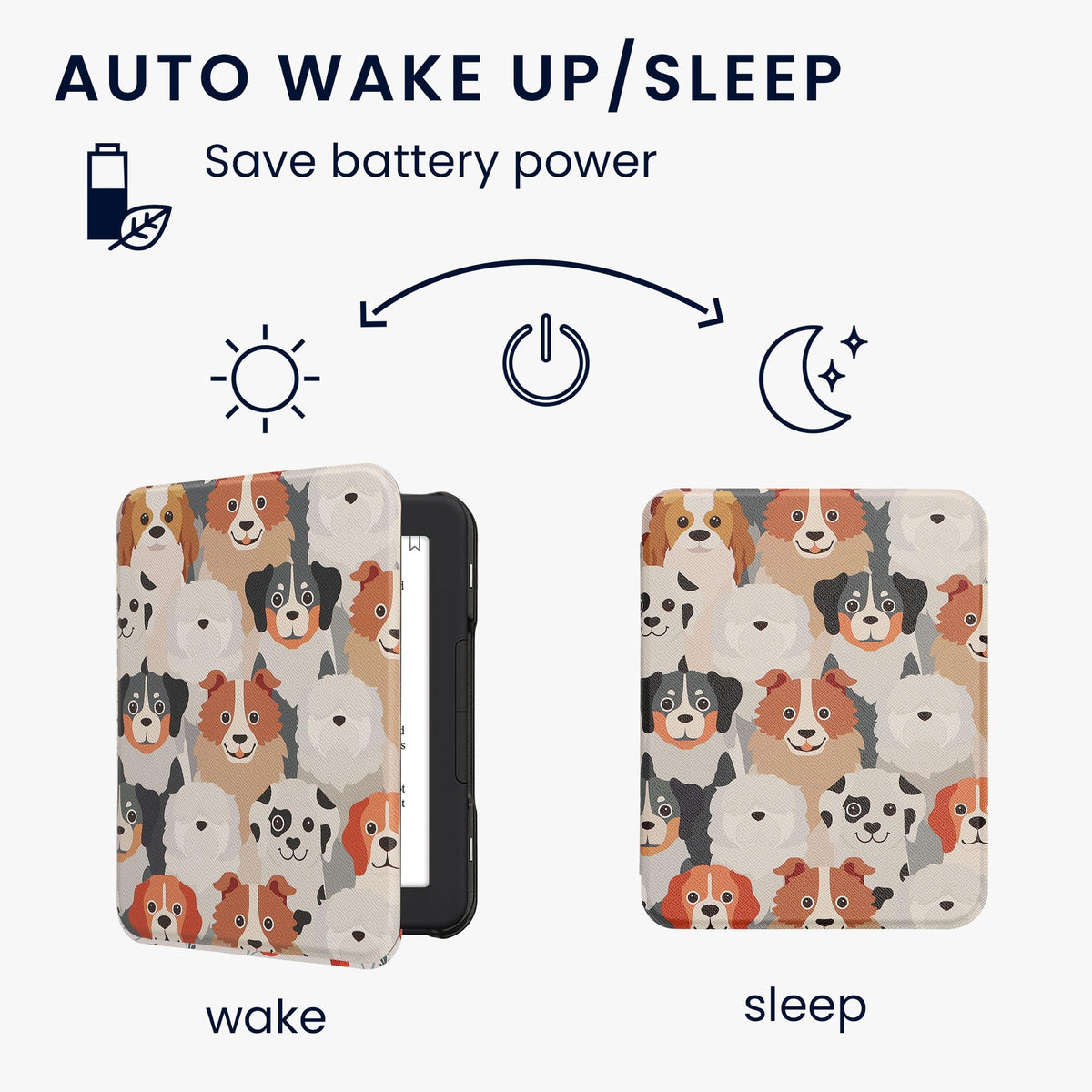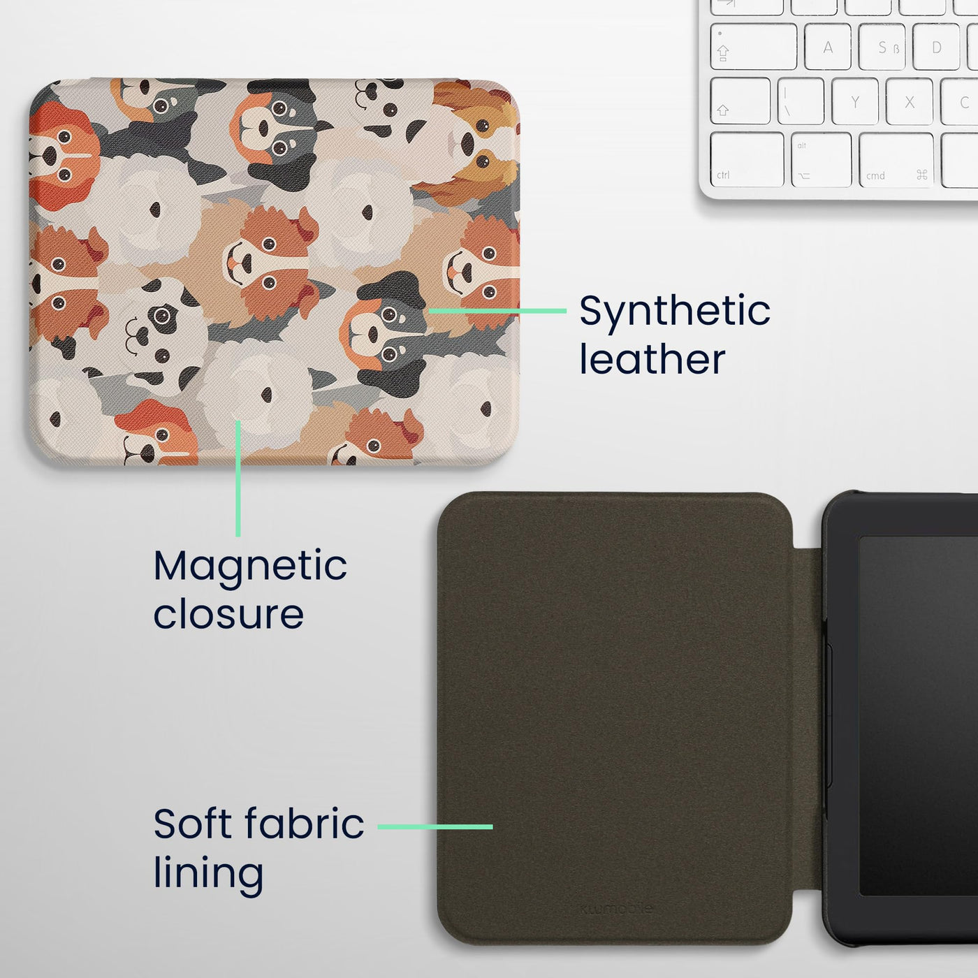 Kwmobile Case Compatible With Barnes & Noble Nook Glowlight 4 / 4E Case Ereader Cover Dogs White/Light Brown/Grey