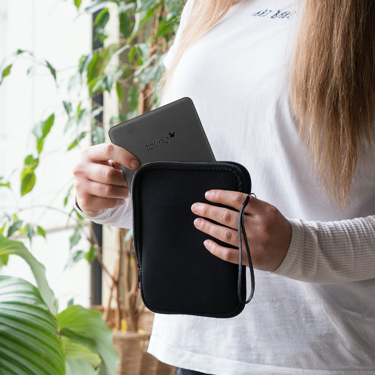 Q: Can I easily carry the kwmobile e-Reader Pouch on the go?A: Yes, the pouch features a wrist strap for convenient carrying, making it easy to take your eReader with you wherever you go.