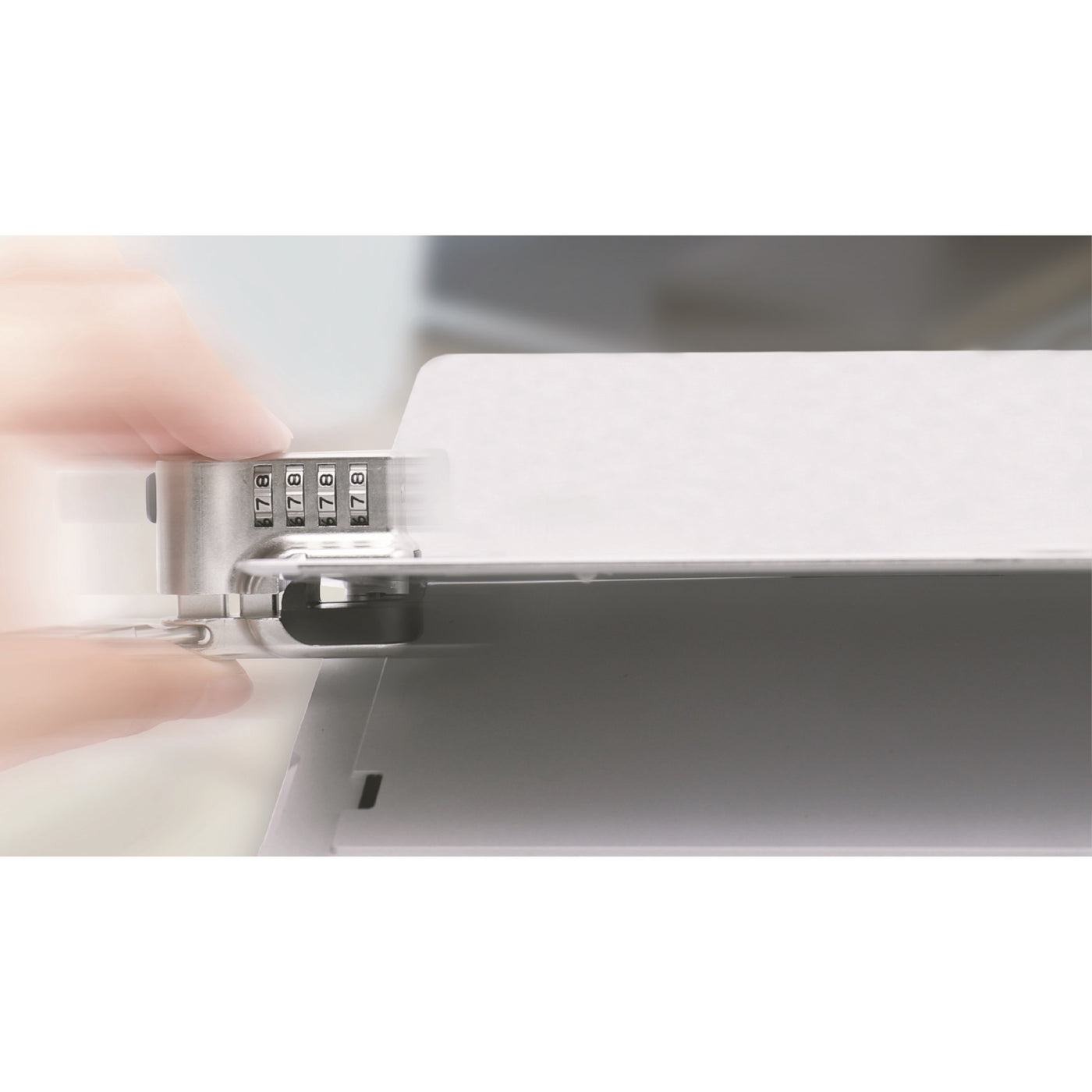 This Combination Lock Security Kit Protects Your Laptop/Tablet Hybrid, Or Other Device From Theft With No Drilling Or Complicated Installation. Simply Attach The Metal Security Plate To The Kickstand Of Your Device. The Included Steel Security Cable Is Attached To The Clip Grip On The Metal Plate, Unlocking With A Built-In, Programmable Combination Lock. The Cable Loops Around A Table Leg Or Other Permanent Fixture At The Other End, Keeping Your Device Well Protected From Theft, And Making This Security Kit An Excellent Fit For Classrooms, Conference Rooms, Retail Counters, Reception Desks, And More.