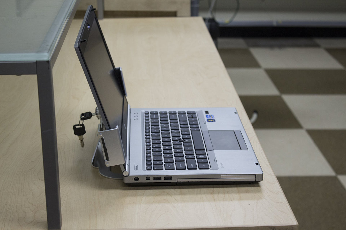 Monmount Locking Laptop Secuiruty Mount Lap1405 The Monmount Lap1405 Attaches Firmly To Laptops For Display Purposes, Uses Keys To Lock And Unlock Quickly. Grips Have Foam To Prevent Scratches On Laptop. Comes In Stylish Sleek Silver Finish. - Color: Silver - Foam Protected Grips - Works With Laptops 11'' To 17'' - Made From Durable Metal - Includes Hardware To Mount Onto Desk Or Display Case - Hole In Back Of Arms For Cable Management - Made By Monmount