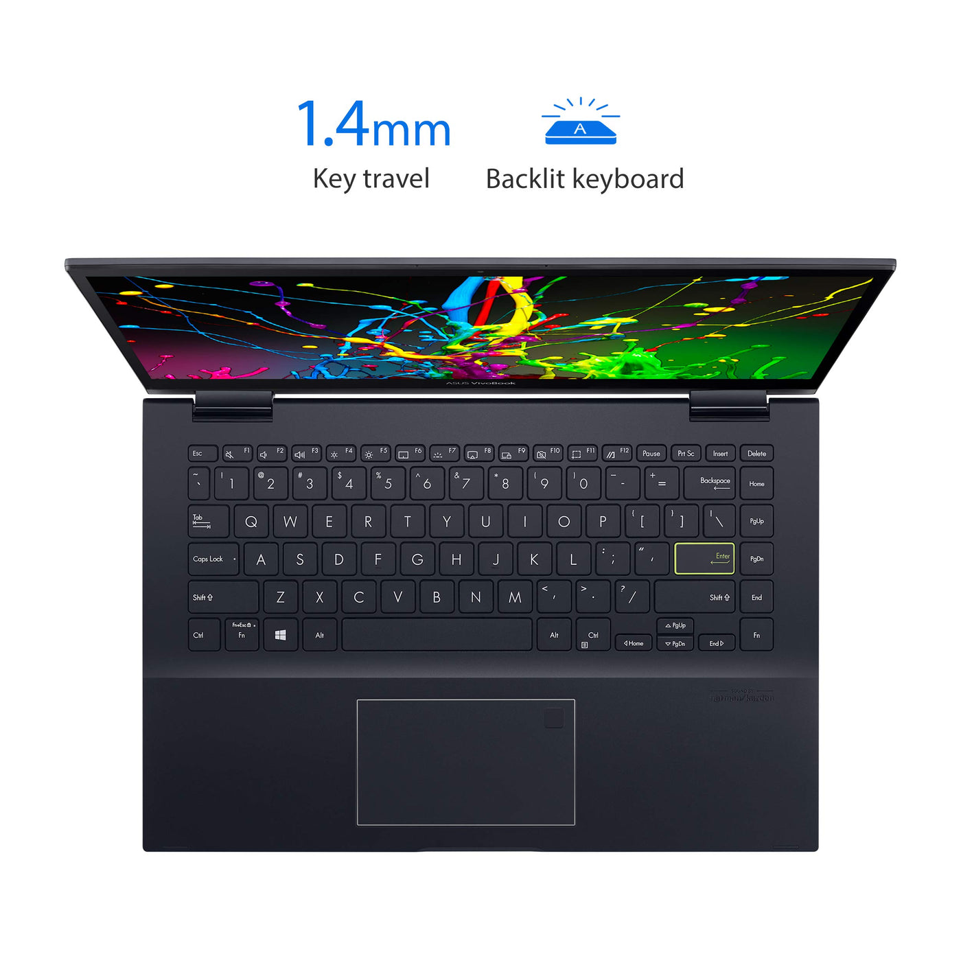 Asus Vivobook Flip 14 Is A Convertible Laptop Thats Full Of Personality, Sporting A Sleek Bespoke Black Finish And A Color-Blocked Enter Key With Yellow Edges And Text. Ready For Performance, Vivobook Flip 14 Is Powered By Up To An Amd Ryzen 7 5700 Mobile Processor With 8Gb Memory And Features A Up To 512Gb Pcie Ssd. A Sturdy 360 Hinge Holds The Display Firmly At Any Angle, Giving You The Flexibility To Use Vivobook Flip 14 As A Traditional Laptop, A Tablet, Or Anything In Between.