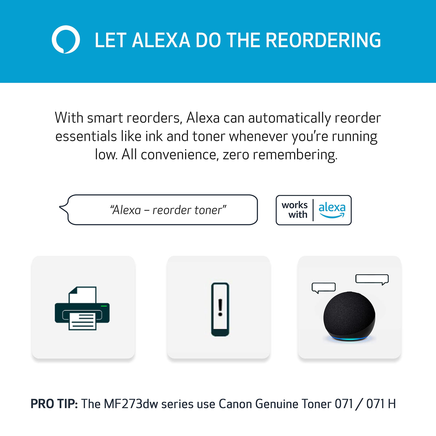 Q: What type of toner does the MF273dw use?A: The Canon imageCLASS MF273dw uses Toner 071, and it is also compatible with the high-capacity Toner 071 for extended printing needs.