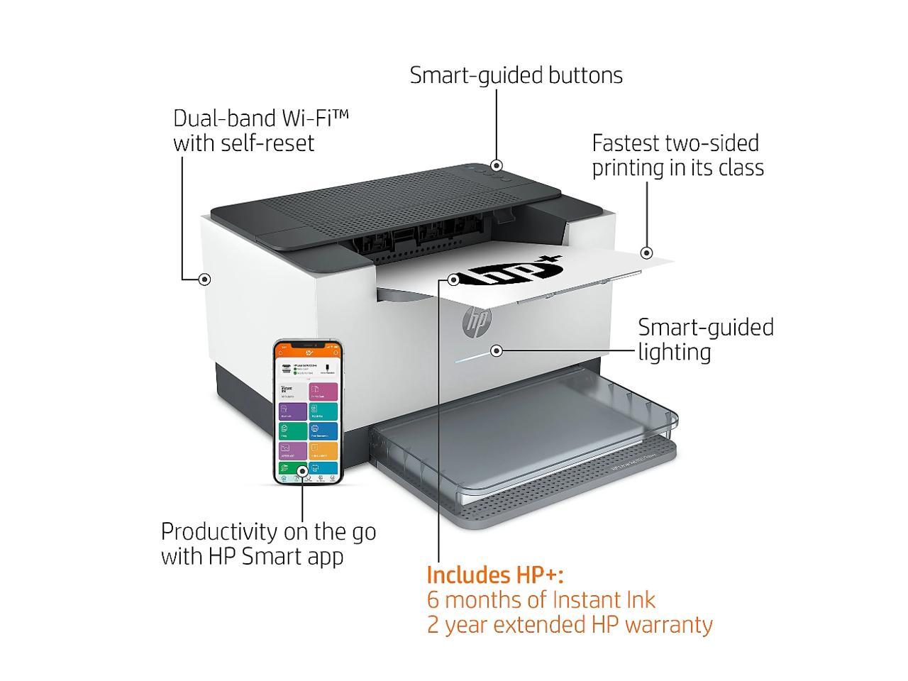 Q: How does the dual-band Wi-Fi feature benefit users?A: The dual-band Wi-Fi with self-reset on the HP LaserJet M209dw automatically detects and resolves connectivity issues, ensuring a more reliable and seamless printing experience without interruptions.