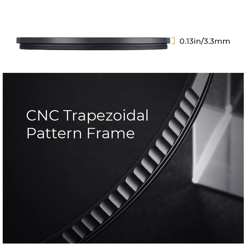 Q: How does the multi-layer coating on this filter benefit image quality?A: The filter features 28 multi-layer coatings that enhance light transmittance to 84%, while effectively reducing reflections and preventing color cast, ensuring high image quality in various lighting conditions.