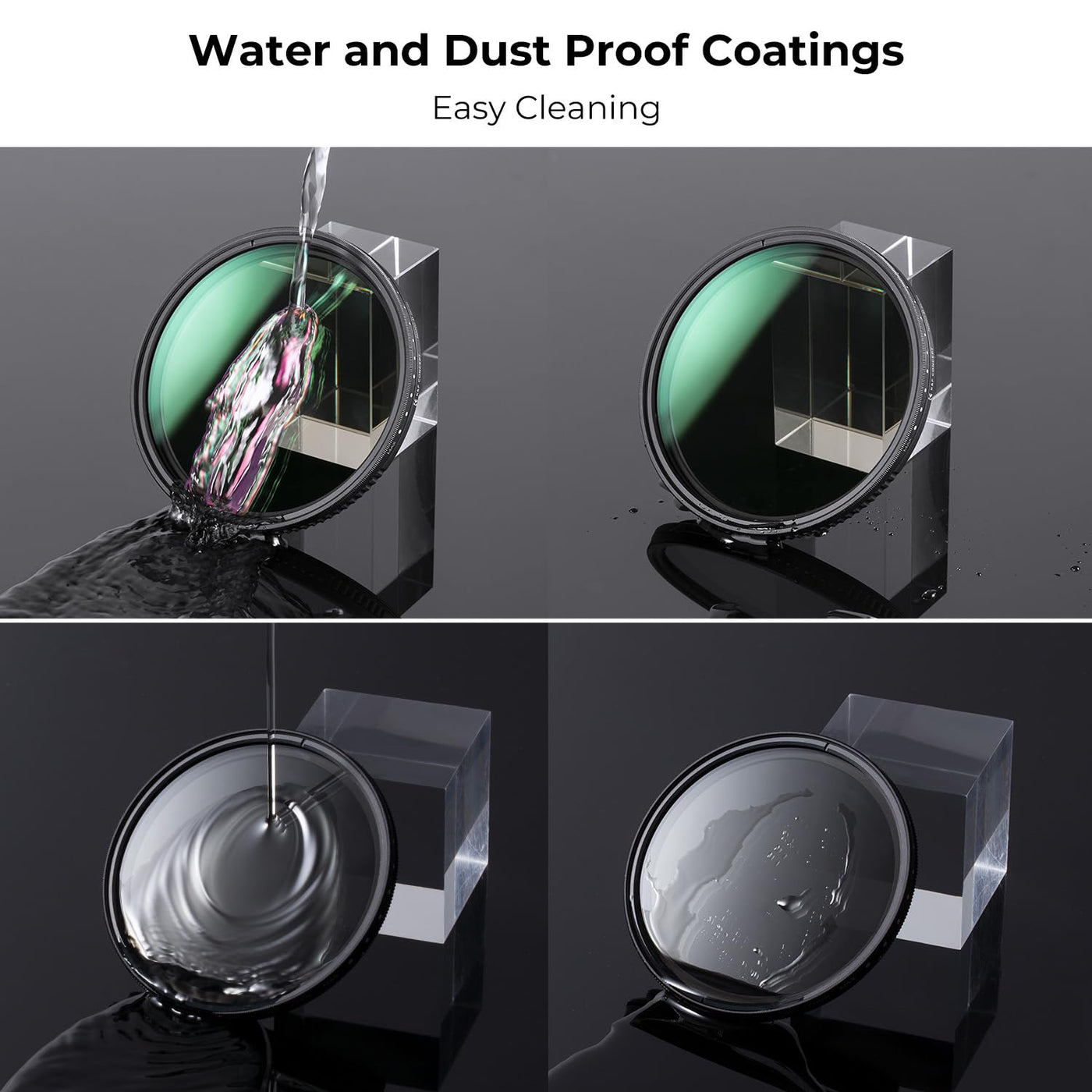 Q: How do I properly clean and maintain the ND filter?A: To clean the K&F Concept ND filter, use a soft microfiber cloth to gently wipe away dust and smudges. For tougher spots, a lens cleaning solution can be used. Avoid abrasive materials that could scratch the filter surface.
