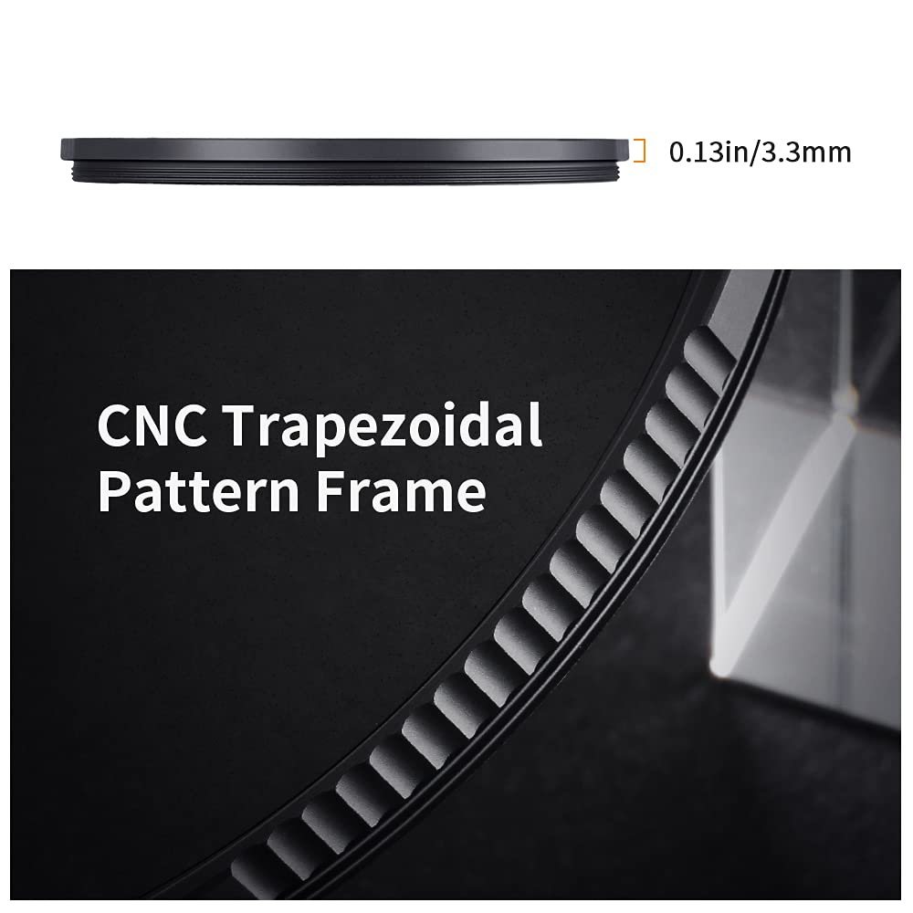 The K&F Concept Black Soft 1/4 Filter Special Effect Filter With Its Unique Multi-Layer Anti-Reflection Coating, Function Effectivly Reduced The Reflection Came From Both Ground And Filter Itself, Increasing The Light Transmittance To 84%. Even At Its Lowest Density K&F Concept Black Diffusion Cine 1/4 Effect Filter Can Soft Wrinkle And Pores Of Human Skin, It Delivers An Effective And Increase In The Halation Which Adds A Pleasing Depth Of Warmth Showing The Delicate And Hazy Movie Effect In Images, But Is Not Transported To The Skin Tone Values.