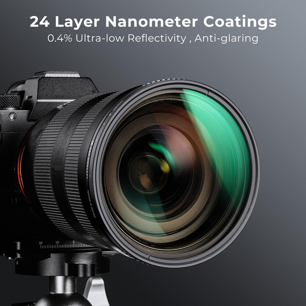Q: How does the 24-layer coating benefit my photography?A: The double-sided 24-layer enhanced coating minimizes surface reflections and glare, ensuring that your images maintain high clarity and quality. This is especially beneficial during prolonged exposures, where unwanted reflections can hinder image quality.