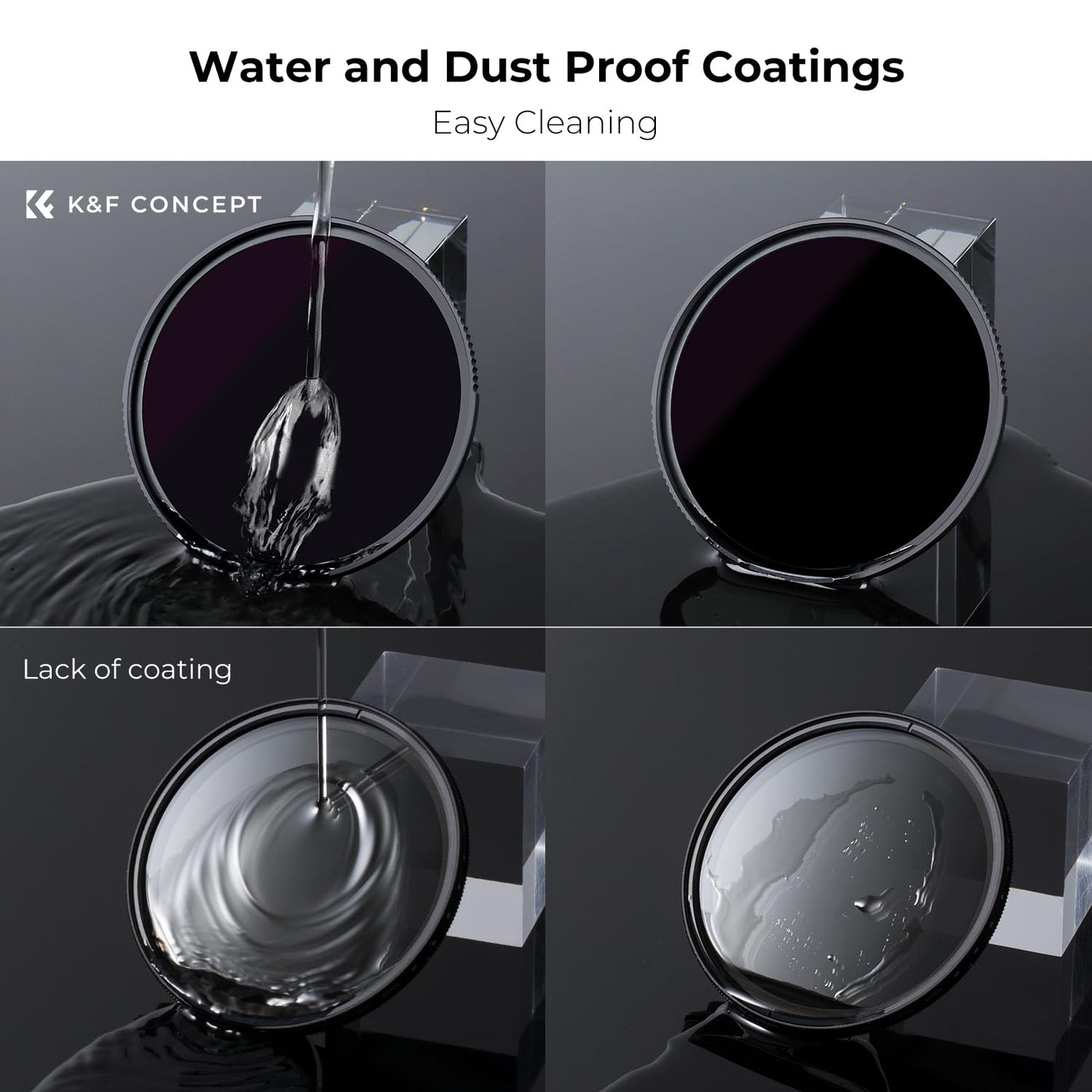 Q: How should I care for and clean my ND filter?A: To maintain the quality of your K&F Concept ND100000 filter, use a microfiber cloth for cleaning and store it in a protective case when not in use. Avoid using harsh chemicals or abrasive materials that could scratch the glass surface.