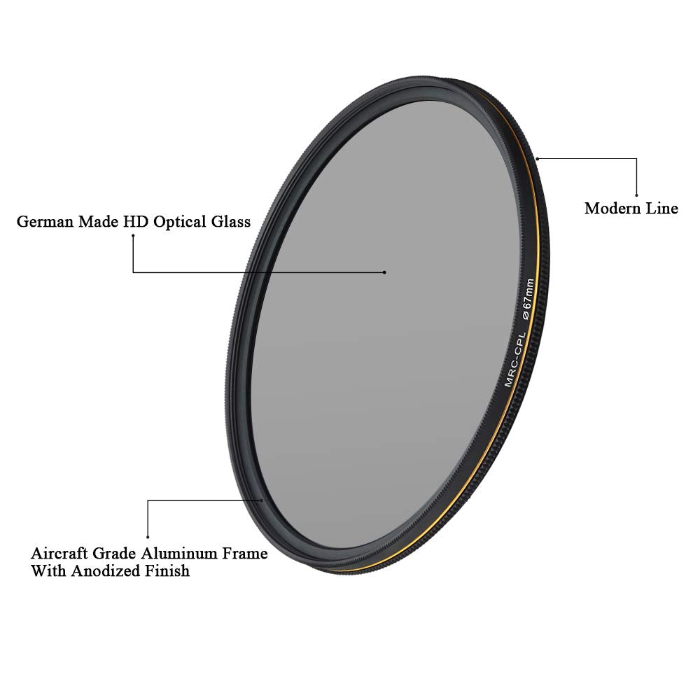 Features: 1.German Optic- Schott B270 Glass Made In Germany For Incredible Sharpness And Excellent Light Transmittance Within The Visible Wavelengths. 2.Mrc Nano Coating Layer Repels Dirt,Water And Scratches,Durable Weather-Sealed Construction. 3.Ultra Slim Aviation Grade Aluminum Frame With Hard Anodized Black Finish And Circular Golden Hightlight - Aesthetically Functional Design That Blends Well With The Fit And Finish Of Professional Lenses. 4.A Standard Mrc Cpl Filter For Most Camera Outfits. Great For Use With: Sony, Minolta, Nikon, Pentax, Olympus And Other Brands Camera Lenses. How Does It Work: Using Our Mrc Cpl Filter Allows You To Find The Best Angle To Filter The Reflected Light Or Diffused Light By Rotating The Cpl Rim To Achieve Greater Colour Saturation, Greater Contrast And Remove Reflections From Non-Metallic Surfaces. You Can Also Use This Filter To Cut Through Ocean Glare As Well As Capturing Beautiful Defined Clouds. It Also Allows You To Took Through The Water Surface Of Clear Rivers And Will Help You Reducing The Reflections From Glacial Peaks While Providing A Rich Blue Sky. Package Included: 1 X 67Mm Mrc Cpl Filter 1 X Portable Storage Case 1 X Lens Cloth