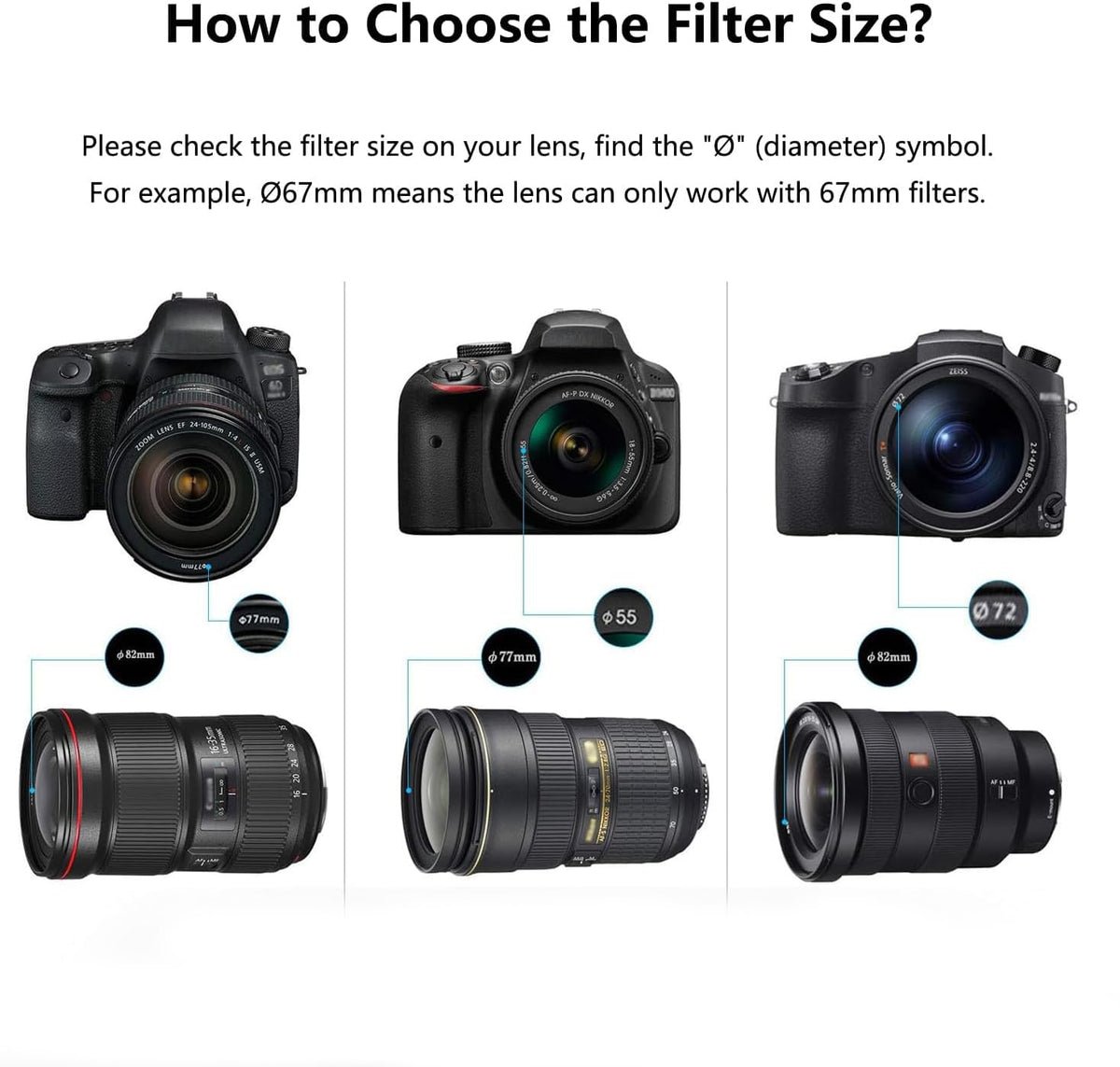 Q: What is a circular polarizing filter and how does it work?A: A circular polarizing filter is a type of filter that helps reduce glare and enhance color saturation in photography. It works by allowing you to adjust the angle of polarization, filtering out reflected light and increasing contrast in your images. This is particularly effective for capturing vibrant skies, reducing reflections on water, and improving overall image clarity.