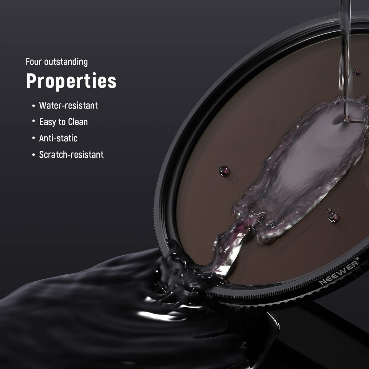 ?1-5 Stops Variable Nd Filter? The Neewer Nd2-Nd32 Variable Filter Is Adjustable From 1 To 5 Stops, With A Rotating Ring To Reduce Light Intake And Extend Exposure Time When Shooting At Slower Shutter Speeds And Wider Apertures. Perfect For Capturing Rivers, Waterfalls, Light Trails And Other Moving Subjects With Dynamic Motion Blur. | ?Without Black ''X'' Cross? The Rotation Range Is Limited To Approximately 70