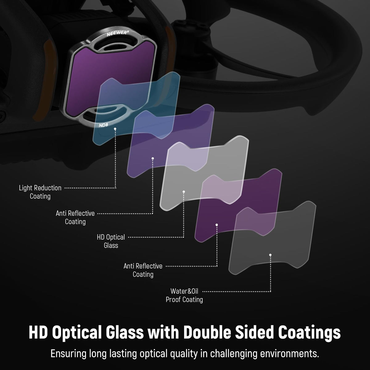 Q: What is the advantage of using multiple ND filters?A: Using multiple ND filters allows you to control the amount of light entering the camera, which is crucial for achieving balanced exposure in various lighting conditions. The NEEWER set provides light reduction options of 3 to 8 stops, enabling you to capture stunning motion blur and dynamic aerial shots.