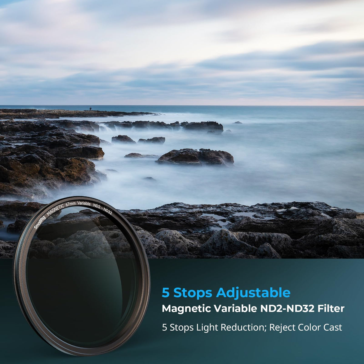 Smallrig 67Mm Magnetic Variable Nd Filter Kit, Nd2 Nd32 (1 5 Stops) Vnd Filter With M Mount Filter Ring With Threaded Filter Rin