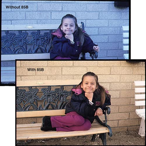 The Tiffen 49Mm 85B Color Conversion Filter Helps To Decrease The Color Temperature From 5500 To 3200K, Allowing The Use Of Tungsten-Balanced Film In Daylight Conditions. The Warming Effect Of This Filter Requires A 0.6-Stop Increase In Exposure For Normal Results.