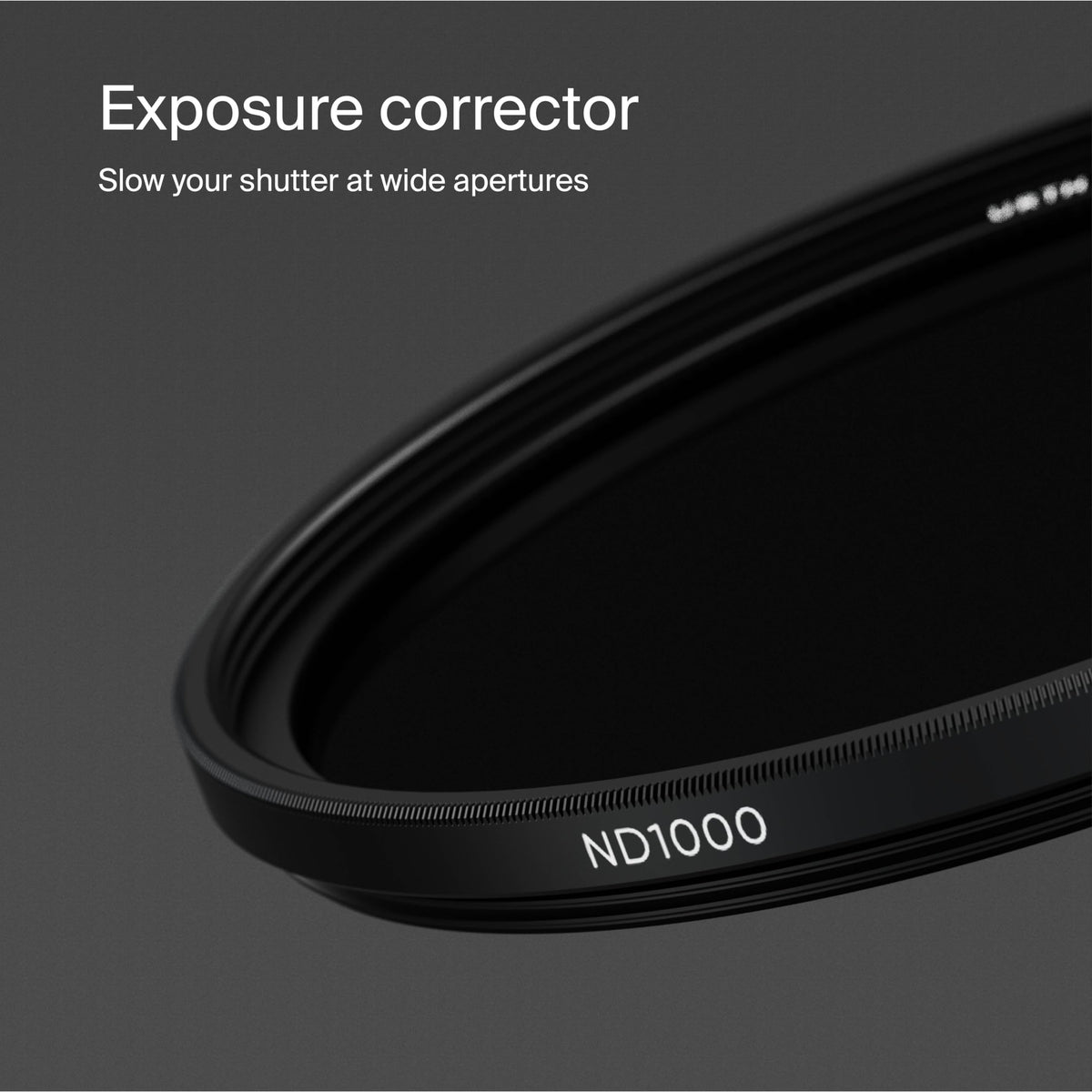 Cut 10 F-Stops | Urth Fixed Nd1000 Lens Filter Plus+ Lets You Capture Motion Blur And Depth Of Field Effects In Bright Light. Great For Landscape Photography. | Control Light | Reduce Light To 0.10% To Maintain You Desired Settings In Overly Harsh Light Or Create Dramatic Motion Blur Without Overexposing The Image. | Pro Glass | This Camera Lens Neutral Density Filter Features 20-Layer Nano-Coated German Schott Glass, Ensuring Exceptional Light Transmission And Image Clarity. | Precision Engineering | Designed With An Ultra-Slim Rim, This Nd Filter Provides Optimal Optics And Eliminates Vignetting. | Lifetime Quality | Made From Tough Magnalium, The Urth Nd1000 Filter Offers Lasting Resilience. Backed For Life.