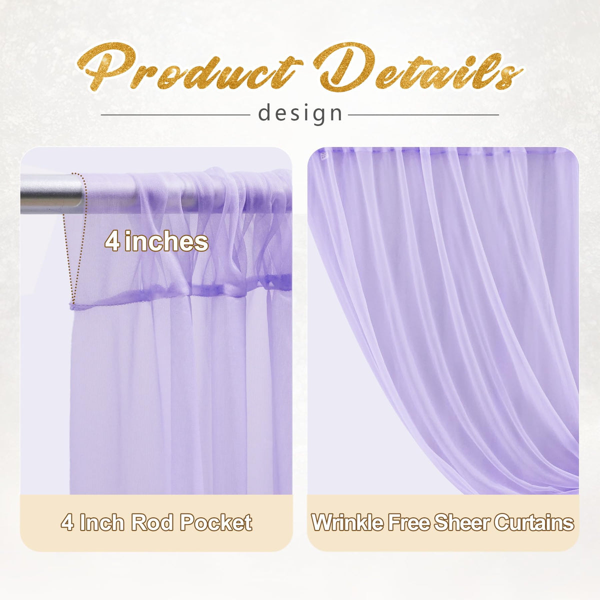 Q: What are the dimensions of the 10x10ft Purple Tulle Backdrop Curtain?A: The backdrop curtain package includes 4 panels, each measuring 5ft in width and 10ft in height, providing a total coverage of 10x10ft.