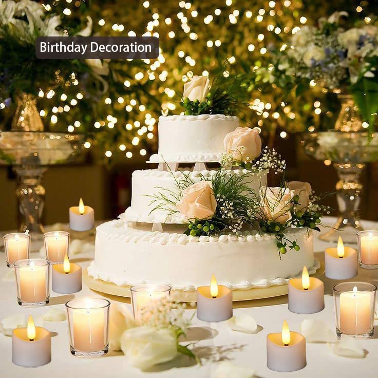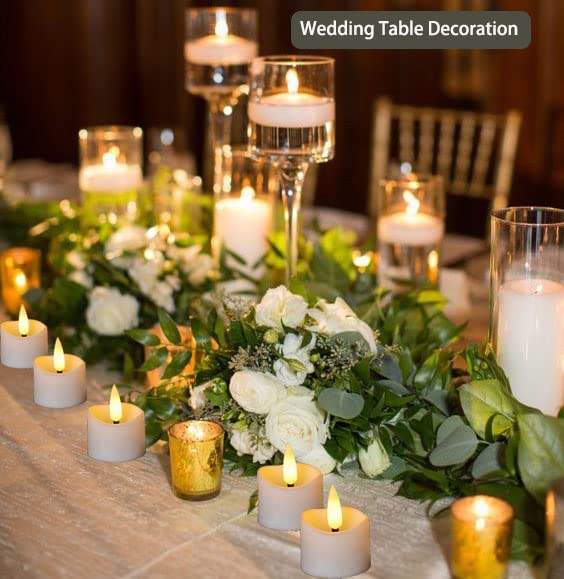 Q: Are these tea lights compatible with standard votive candle holders?A: Yes, the flameless tea lights have a base that is the same size as standard votive candles, allowing them to fit perfectly in most votive candle holders.