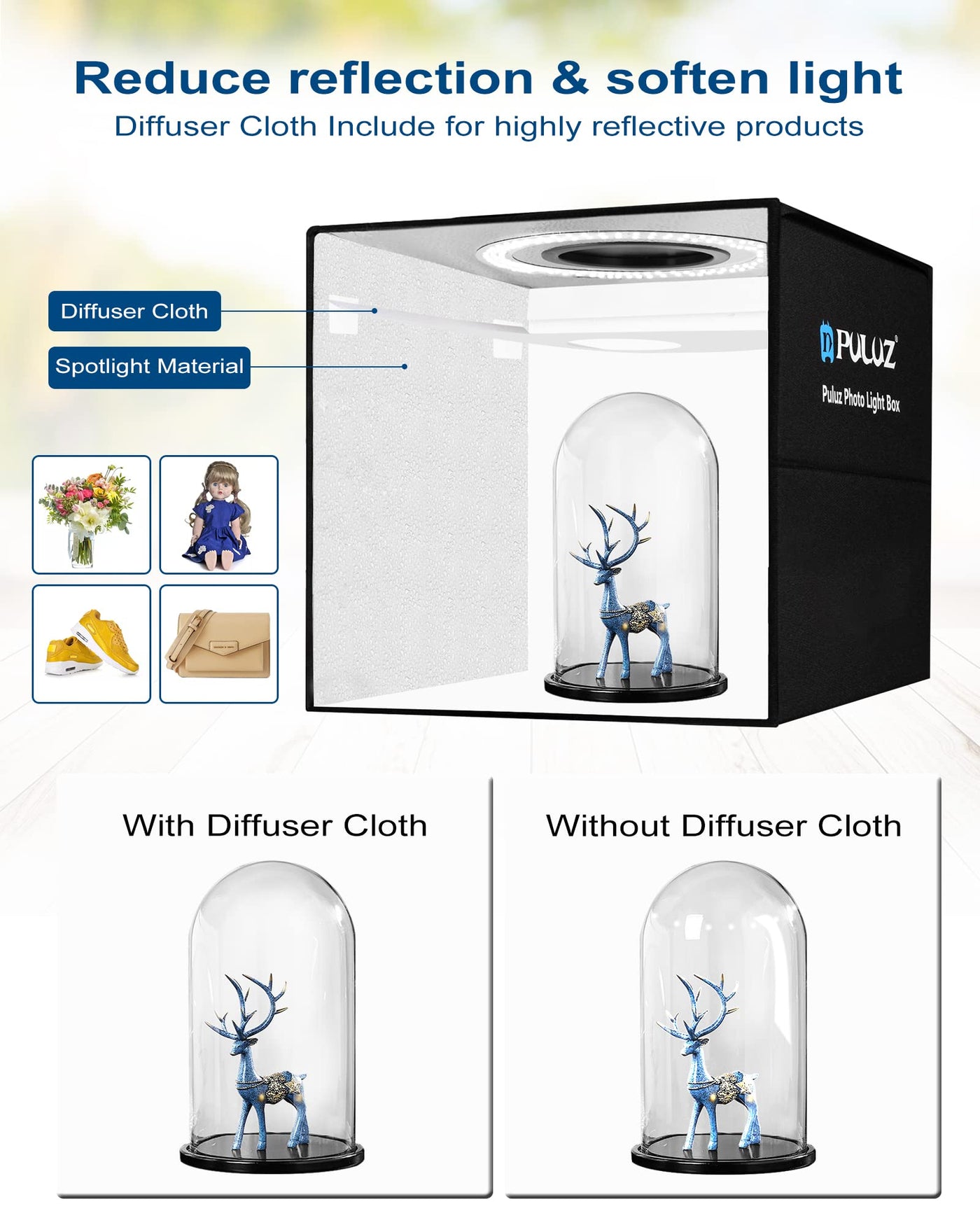 16'' 16'' Professional Photo Studio Light Box,Puluz Portable Foldable Light Box Photography,Tri Color Dimmable Photo Box Kit Wi