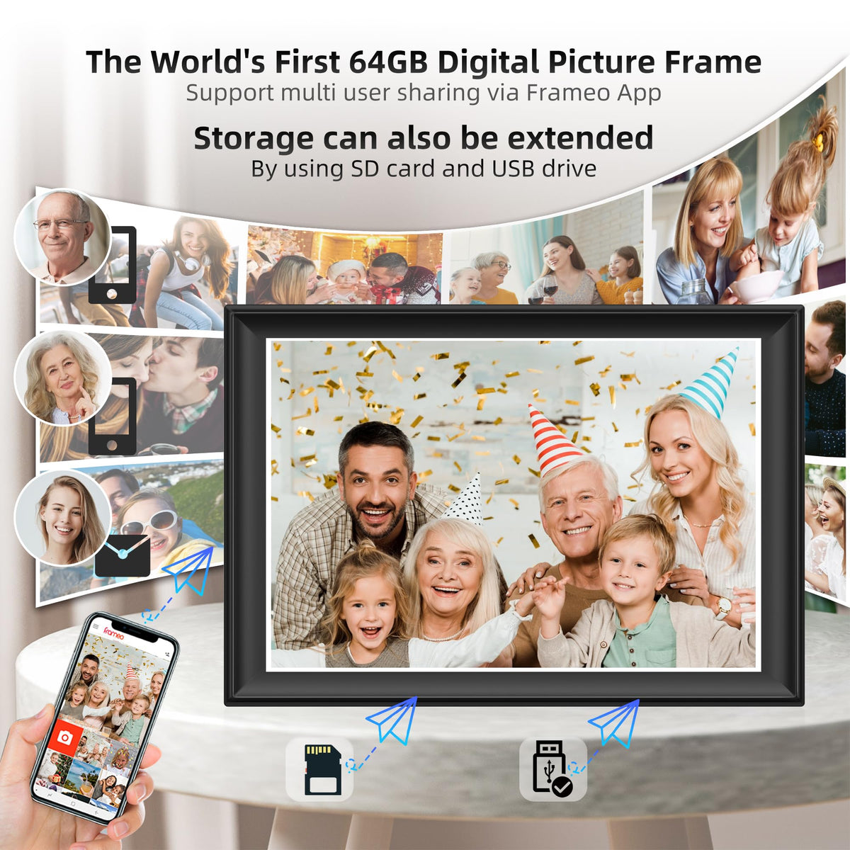 64Gb 11Inch Frameo Digital Picture Frame 100%Srgb 1920X1280 Fhd Ips Lcd Touch Screen, Dual-2.4G&5G Wifi Share Photos & Videos Via Frameo App, Support Usb Drive/Sd Card Extend Storage, Auto-Rotate,Black Color.