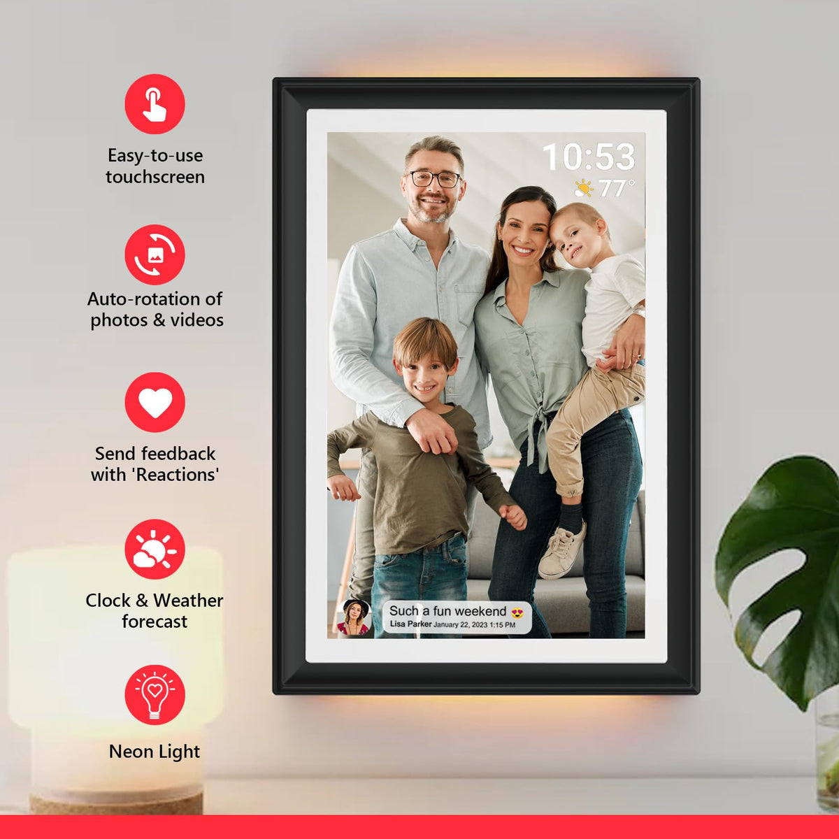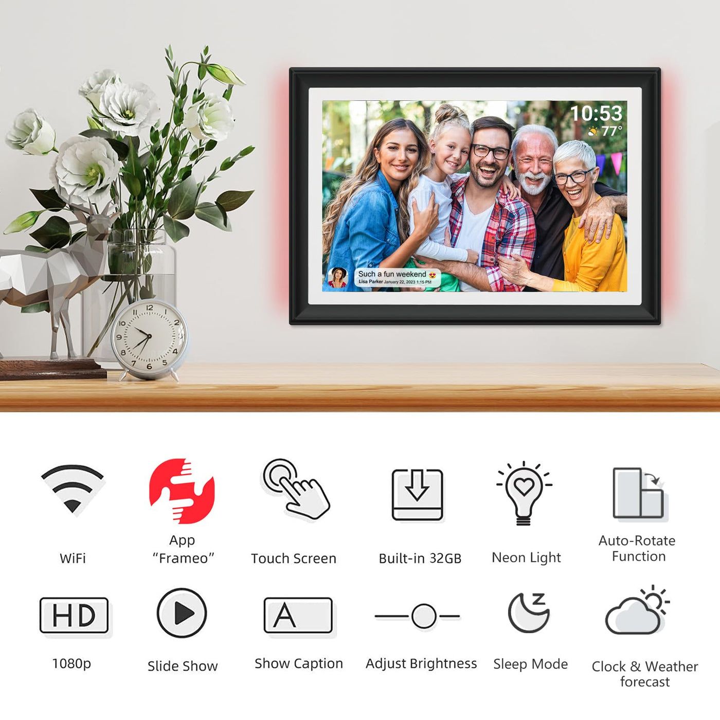 32Gb Frameo 10.1 Inch Wifi Digital Photo Frame With Led Light, 1280X800 Hd Ips Lcd Touch Screen, Auto Rotate Portrait And Landsc