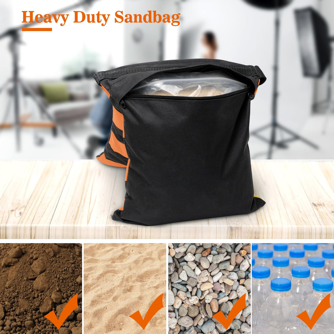 ?Package Contain?The 4Pcs Orange Photography Sandbags Come With 4 Pcs Aluminum Clips And 8 Pe Sealed Bags. Warm Tip: The Sandbags Are Empty And Not Loaded With Sand. ?Excellent Craftsmanship?Aimosen Sandbag Is Made Of Oxford Fabric, Which Is Wear-Resistant And Sturdy. The Pvc Coated Oxford Cloth Lining Can Bring You A Soft And Smooth Tactility Experience. With The Auxiliary Products, The Pe Bag Can Prevent The Sandbag From Dust And The Aluminum Clip Can Help You Fix The Sandbag. ?Dual Zippers Design?Each Side Of Each Sandbag Has Two Opposite Direction Zipper. If You Damage One Zipper Accidentally When You Use, The Dual Zippers Design Can Still Make You Use The Sandbag Normally. ?Operating Steps?First, Put The Sands Or Gravel Near Your House In The Pe Sealed Bag. Then, Put The Pe Bag Which Filled With Sand In The Sandbag. Finally, Hang The Heavy Duty Sandbags Where You Need Them. ?Flexible Application?The Sandbags Are Ideal Choices For Your Indoor Or Outdoor Use, Can Be Suitable For Varieties Of Places, Such As Photography Tripod, Photo Studios, Canopy Swing, Camping Tents, Outdoor Patio, Sports, Fishing Chair, Picnic Table, Etc.