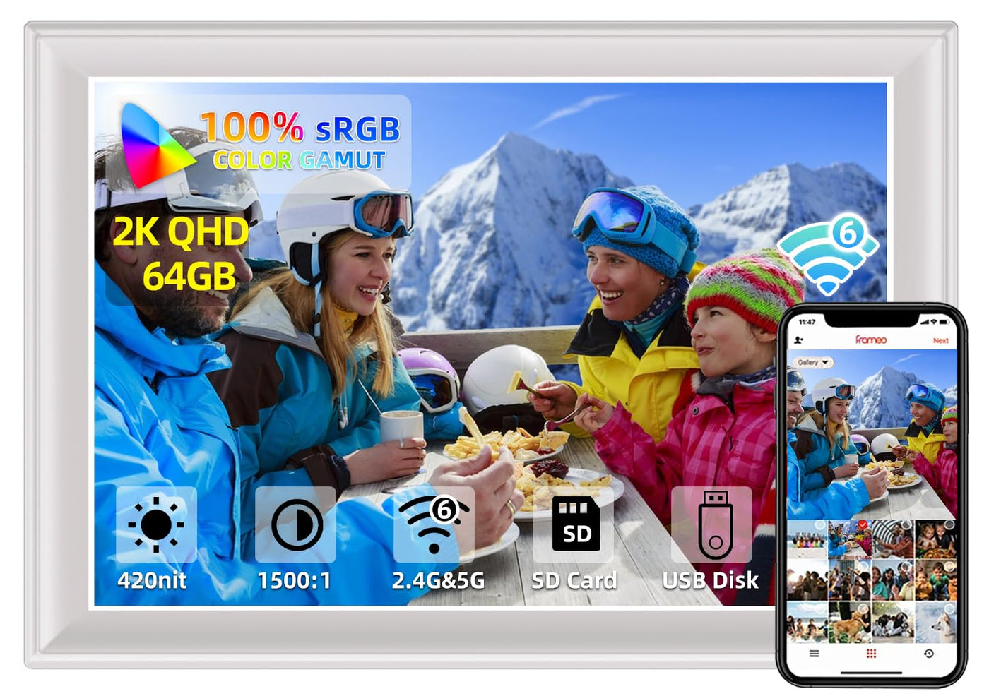 64Gb 11Inch Frameo Digital Picture Frame 100%Srgb 1920X1280 Fhd Ips Lcd Touch Screen, Dual-2.4G&5G Wifi Share Photos & Videos Via Frameo App, Support Usb Drive/Sd Card Extend Storage, Auto-Rotate