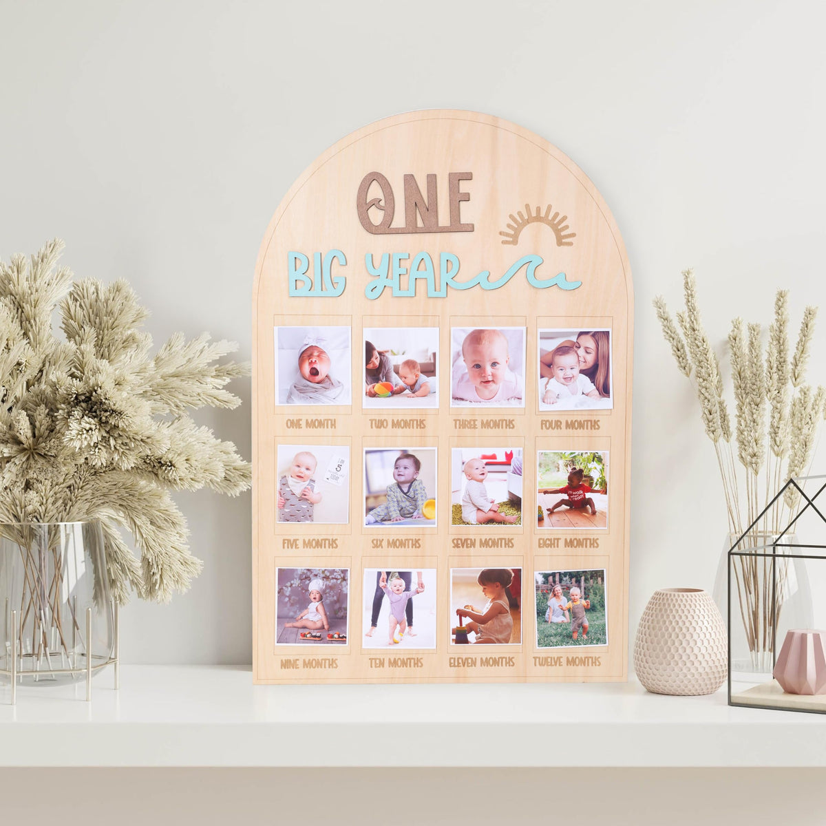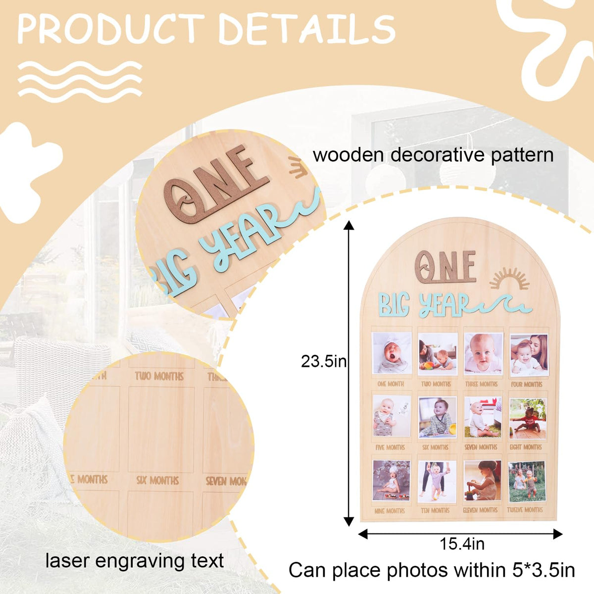 Agkvw The Big One Surf One Year Old Photo Board My First Year Photo Display Wood Board, Wave Theme Monthly Milestone Photo Boa