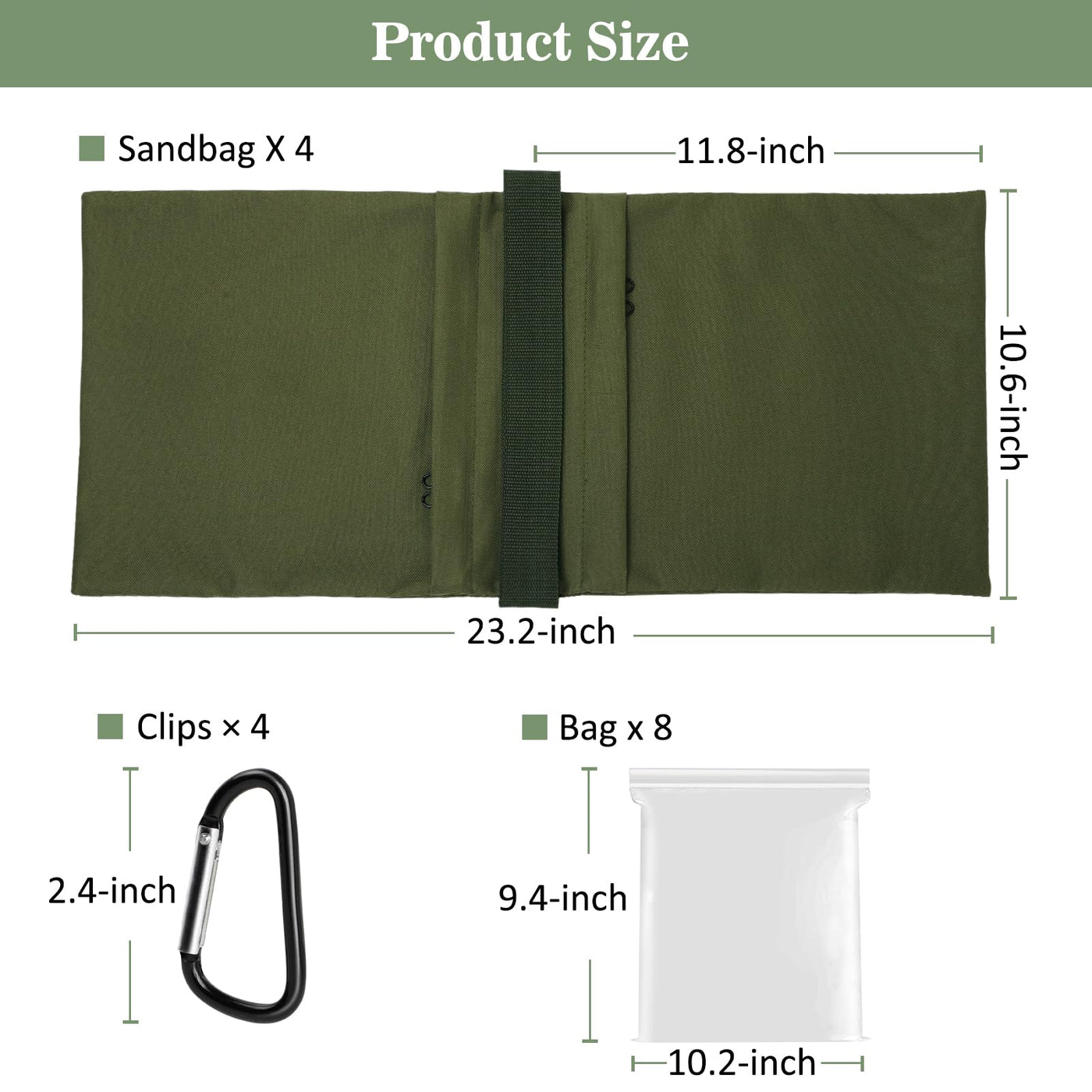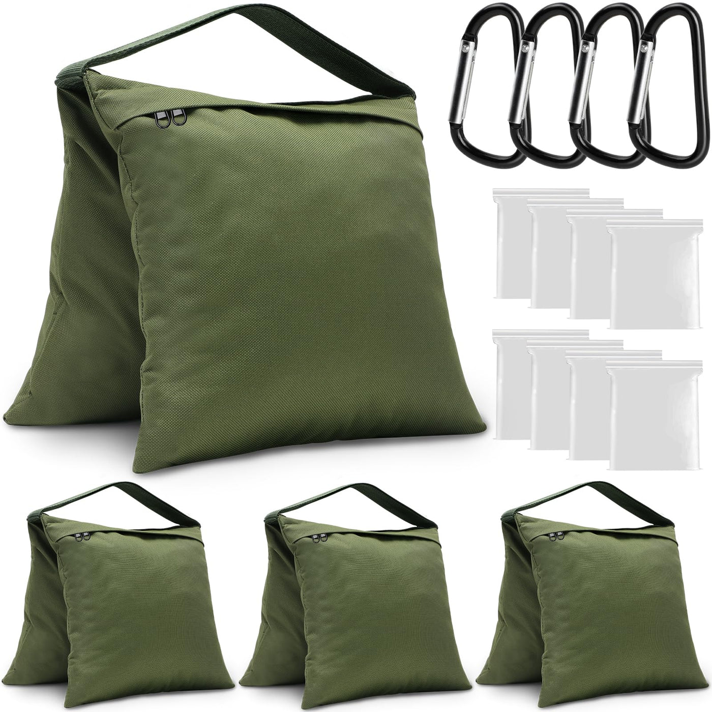 ?Package Contain?The 4Pcs Green Photography Sandbags Come With 4 Pcs Aluminum Clips And 8 Pe Sealed Bags. Warm Tip: The Sandbags Are Empty And Not Loaded With Sand.