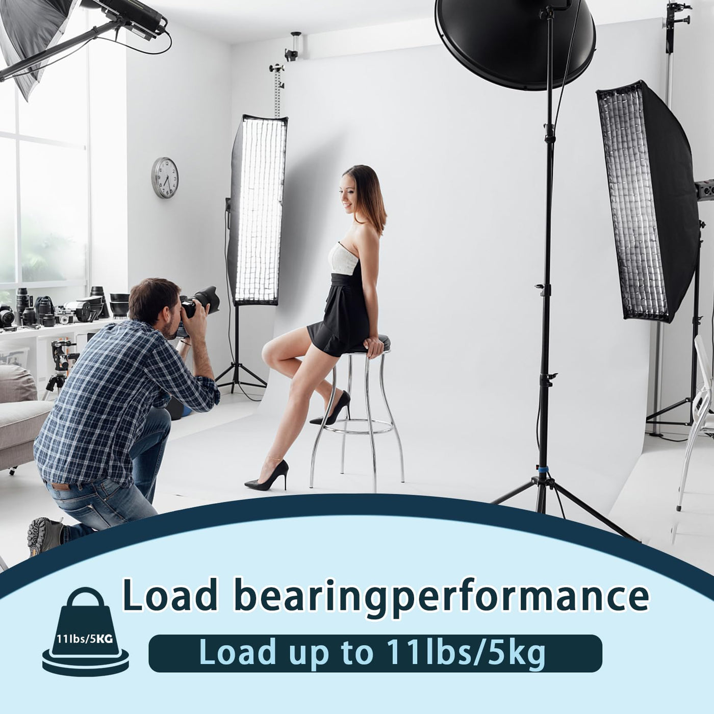 Q: How much weight can the Altson light stand support?A: The Altson light stand is designed to support up to 11 lbs, making it sturdy enough for both light and heavy video devices, including smartphones and professional cameras.