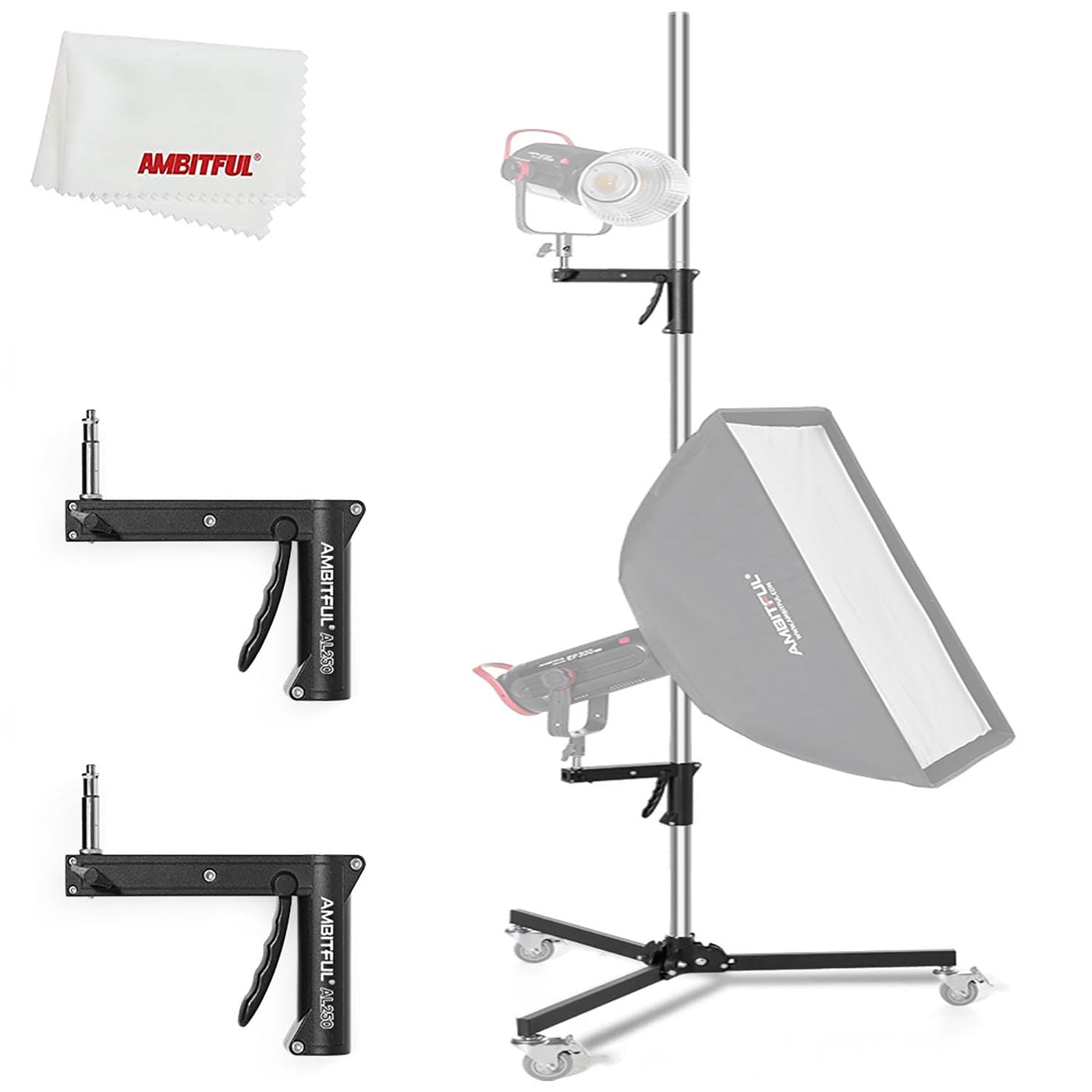 Ambitful Al250 Steel Wheeled Mobile Heavy Duty Light Stand For Photography W/Sliding Grip Arm & Chrome-Plated Column Stand, Maxs
