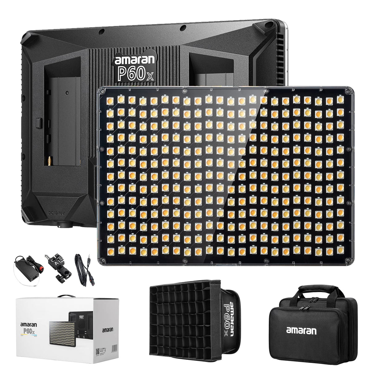 Aputure Amaran P60X Video Panel Light,Color Temperature 3200K 6500K,60W Cri95+/Tlci 97+,5070Lux@1M,With Softbox,Support App